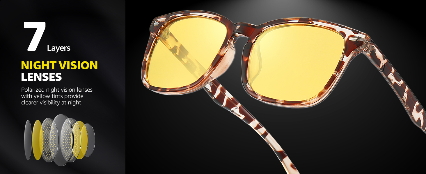 القدرة على التكيف مع السيناريوهات المتعددة: مثالية للقيادة الليلية، والأيام الممطرة، والسماء الملبدة بالغيوم، والظروف الثلجية، والضباب - تتفوق نظارات القيادة الليلية هذه في جميع البيئات منخفضة الإضاءة. مصمم للسائقين الليليين الذين يعانون من الوهج، وعشاق الهواء الطلق، والمستخدمين الذين يبحثون عن حماية مزدوجة الاستقطاب ليلاً ونهارًا.