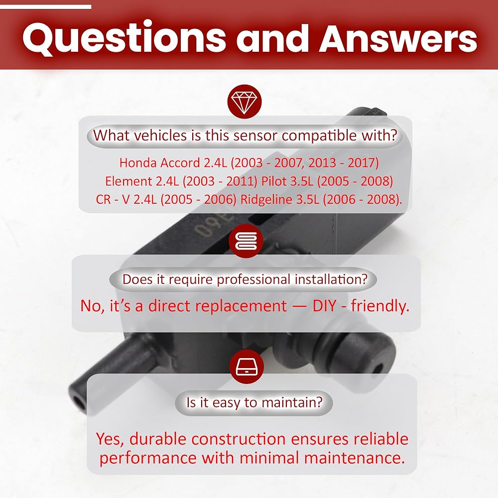 - جودة عالية: مصنوع من مواد متينة، هذا المستشعر مصمم ليدوم طويلاً. فهو يتحمل قسوة القيادة اليومية، مما يضمن الموثوقية وراحة البال على المدى الطويل.
