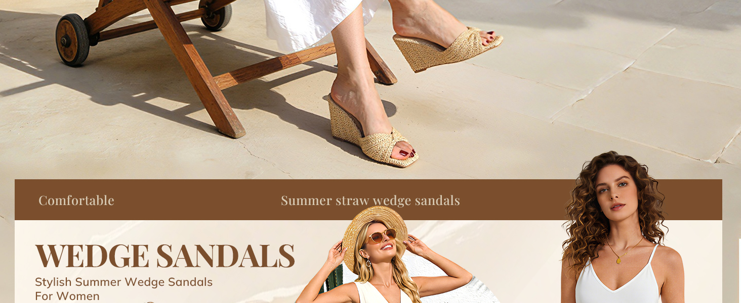 • مادة طبيعية وجيدة التهوية: مصنوعة من القش المنسوج عالي الجودة، توفر هذه الصنادل ذات الكعب العالي ملمسًا طبيعيًا وتهوية ممتازة، مما يحافظ على قدميك جافة ومرتاحة حتى في الطقس الحار.