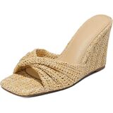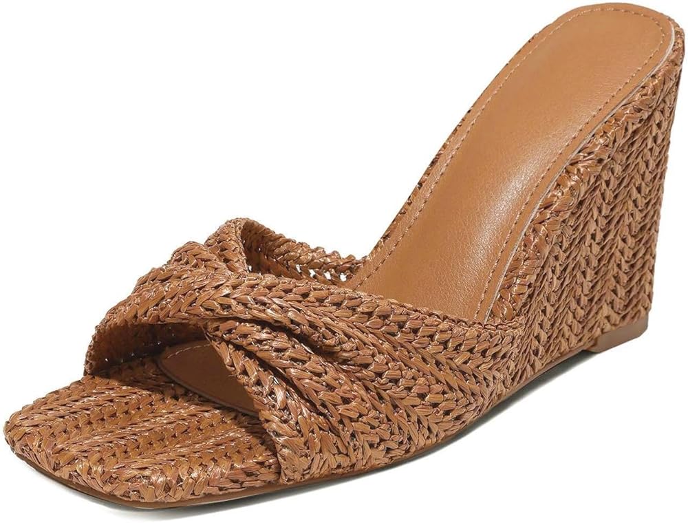 صنادل ويدج للنساء صيفية من الرافية المضفرة - سهلة الارتداء، مقدمة مربعة مفتوحة، أنيقة، الشاطئ، المساء