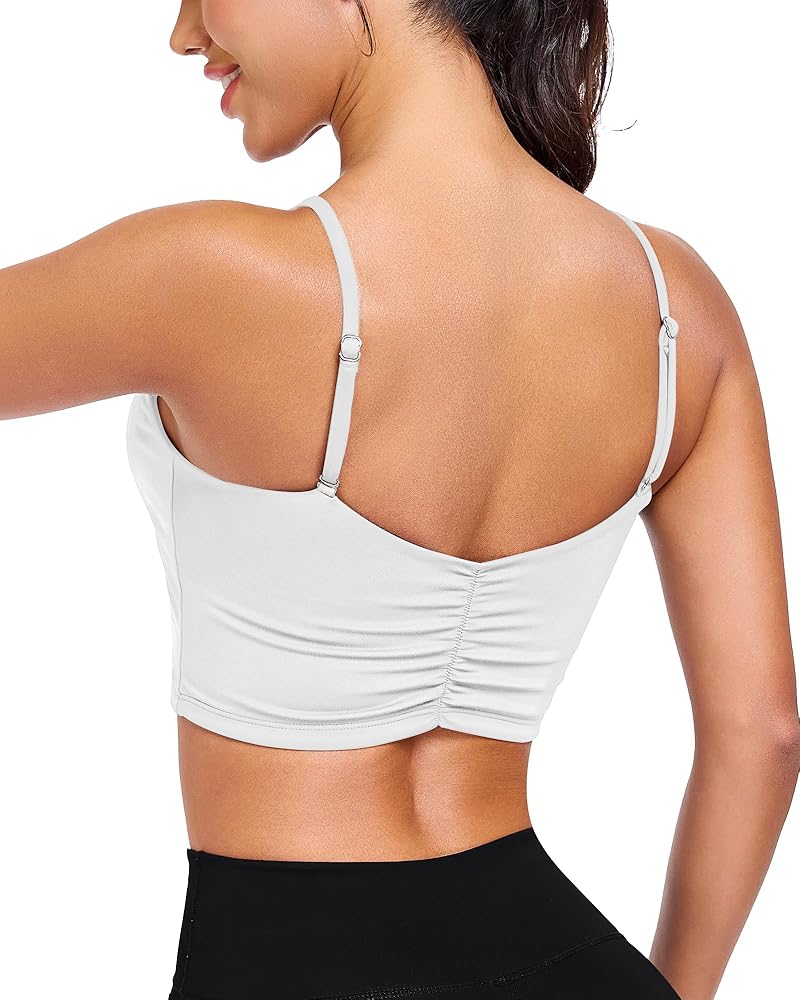 حمالات صدر رياضية متوسطة الدعم للنساء: توفر الأشرطة المرنة والشريط المطاطي أسفل الصدر دعمًا متوسطًا للقميص بدون أكمام ذو الرقبة المربعة. تحافظ حمالات الصدر الرياضية النسائية على ثدييك في مكانهما بشكل فعال أثناء التمارين منخفضة الكثافة، مثل اليوغا والبيلاتس