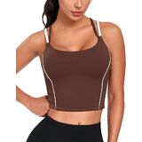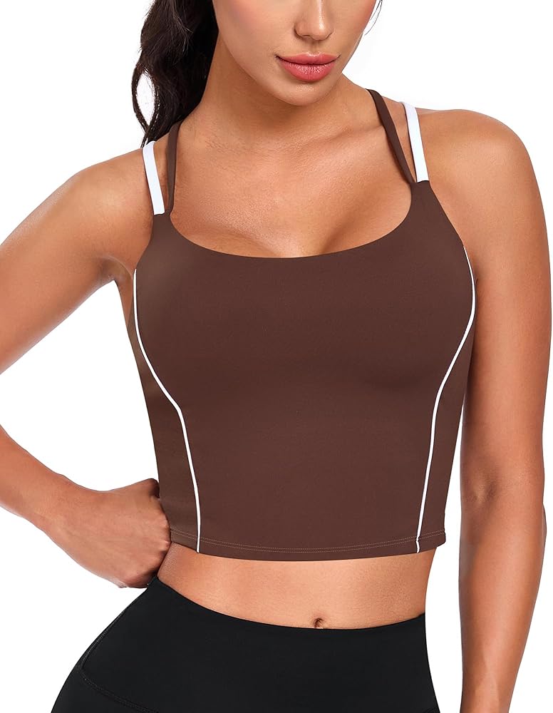 QUOJIZY حمالات صدر رياضية طويلة للنساء بأشرطة سباغيتي بدون أكمام مع حمالة صدر مدمجة حمالة صدر رياضية لليوجا in Kuwait