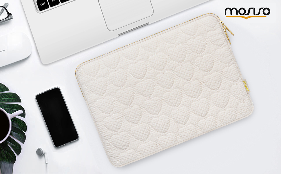 حقيبة كمبيوتر محمول MOSISO مقاس 13-14 بوصة، حافظة كمبيوتر محمول مقاس 13.3 بوصة متوافقة مع MacBook Air 13 13.3 13.6/Pro 13/14، HP Dell ASUS Lenovo، حقيبة كمبيوتر مبطنة لطيفة على شكل قلب مربع للنساء، رملي