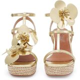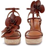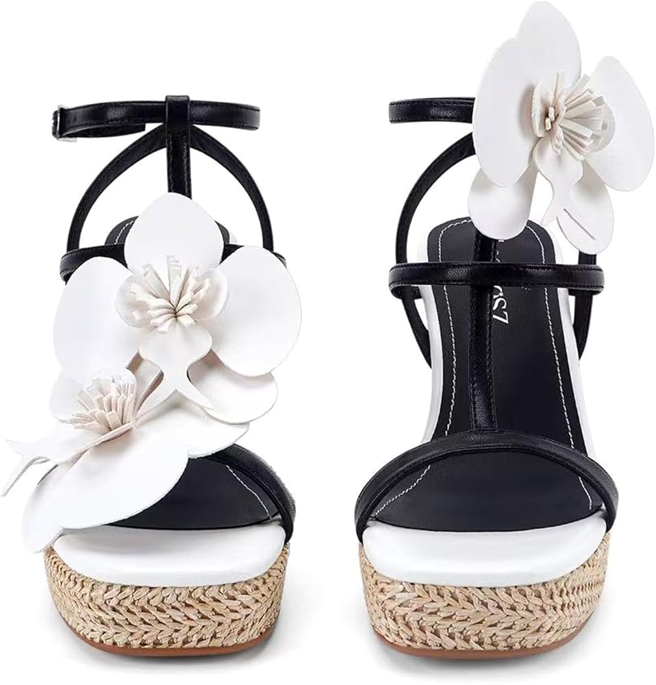 صنادل ذات نعل عريض وتصميم زهور --- يبلغ ارتفاع الكعب حوالي 3.94 سم، وارتفاع المنصة حوالي 1.5 سم. تمزج هذه الصنادل ذات الكعب العالي بين الطراز الجديد وأناقة الكعب الرسمي.