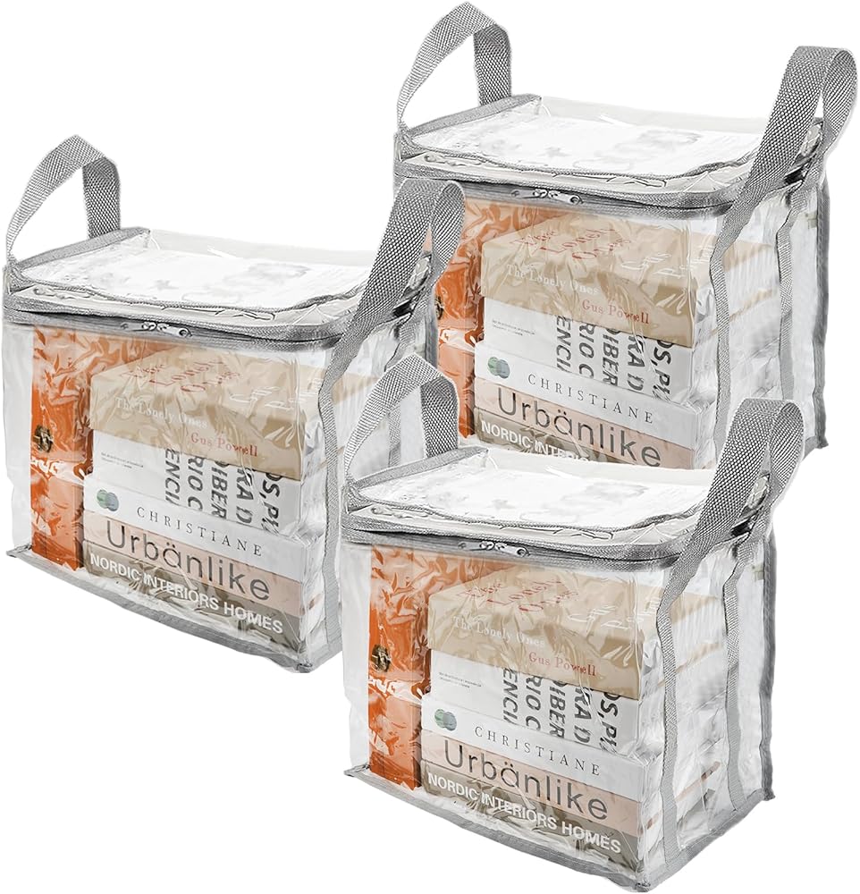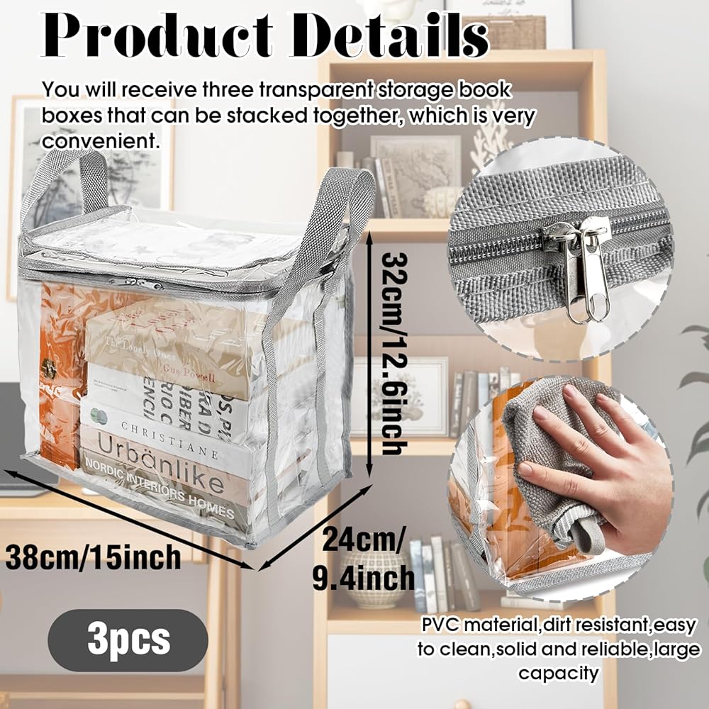 مجموعة حقائب تخزين الكتب الشفافة مكونة من 3 قطع، منظم صندوق كتب هزلية شفاف قابل للطي للتخزين الهزلي، مثالية لتخزين الألعاب والمزيد، المكتب، أو المنزل، سهلة الحمل وموفرة للمساحة