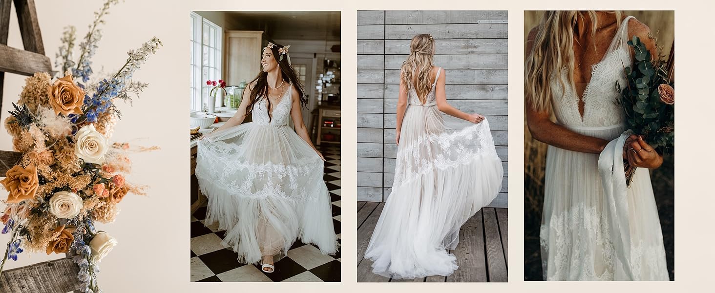 مناسبات مناسبة لفستان الزفاف ذو المظهر البوهيمي: يناسب فستان الزفاف البوهيمي الريفي هذا المزيد من المناسبات مثل الشاطئ، والحديقة، والمنتزه، والكنيسة، والعتيقة، وحفلات الزفاف الريفية، والحفلات الرسمية، وحفلات الزفاف غير التقليدية، واحتفالات الذكرى السنوية، وحفلات العطلات، وحفلات أعياد الميلاد، وتصوير الزفاف، والفرار، وحفلات الزفاف في الفناء الخلفي وغيرها من المناسبات.
