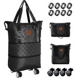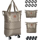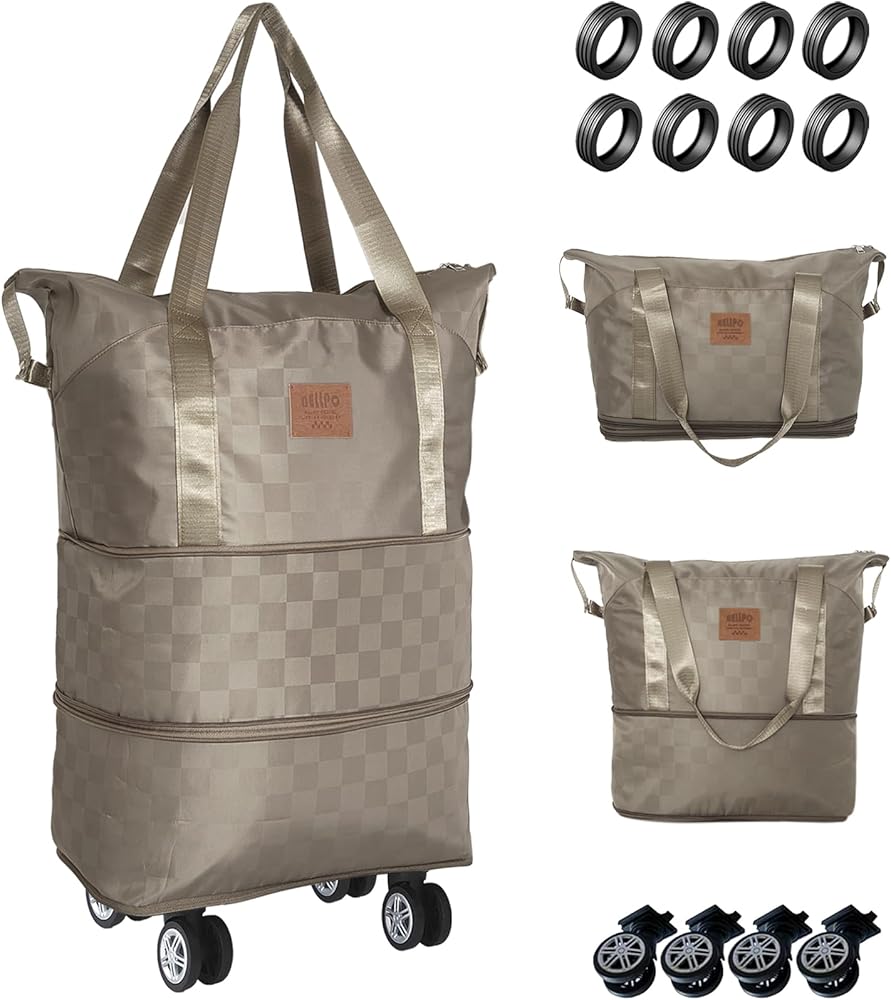 حقيبة سفر واق من المطر بعجلات، حقيبة من القماش الخشن قابلة للتوسيع والطي سعة 28-58 لتر - خفيفة الوزن ومتينة وحقيبة حمل لصالة الألعاب الرياضية والتخييم ورحلة العمل - هدية مثالية للرجال والنساء (كاكي)