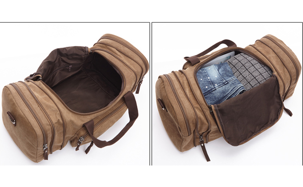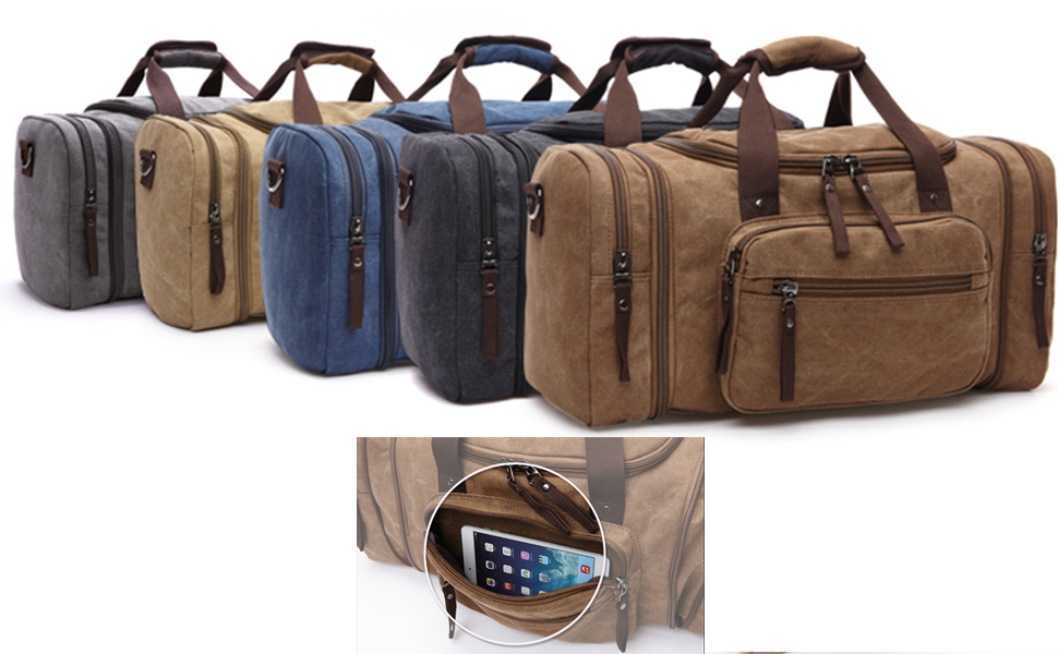 تصميم متعدد الجيوب: حقيبة سفر مع حجرة رئيسية كبيرة، وجيب واحد بسحاب، و3 جيوب صغيرة بالداخل. مجهز خارجيًا بجيبين جانبيين بسحاب وجيبين أماميين بسحاب. سعة كبيرة، يمكن لحقيبة السفر الرجالية أن تستوعب جهاز كمبيوتر محمول iPad مقاس 15 بوصة والملابس والأحذية وغيرها من الضروريات اليومية.