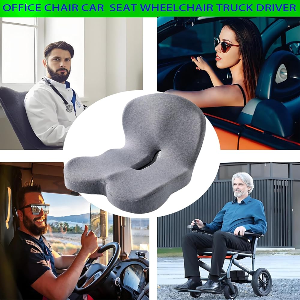 وسادة مقعد مدمجة من إسفنج الذاكرة على شكل حرف L لكرسي المكتب والشاحنة والسيارة، وسادة مقعد مريحة للسائق للظهر وأسفل الظهر ودعم عظم الذيل لسائق الشاحنة والقيادة الطويلة (رمادي)