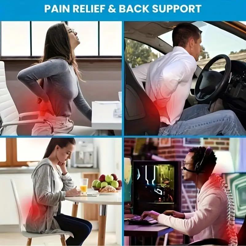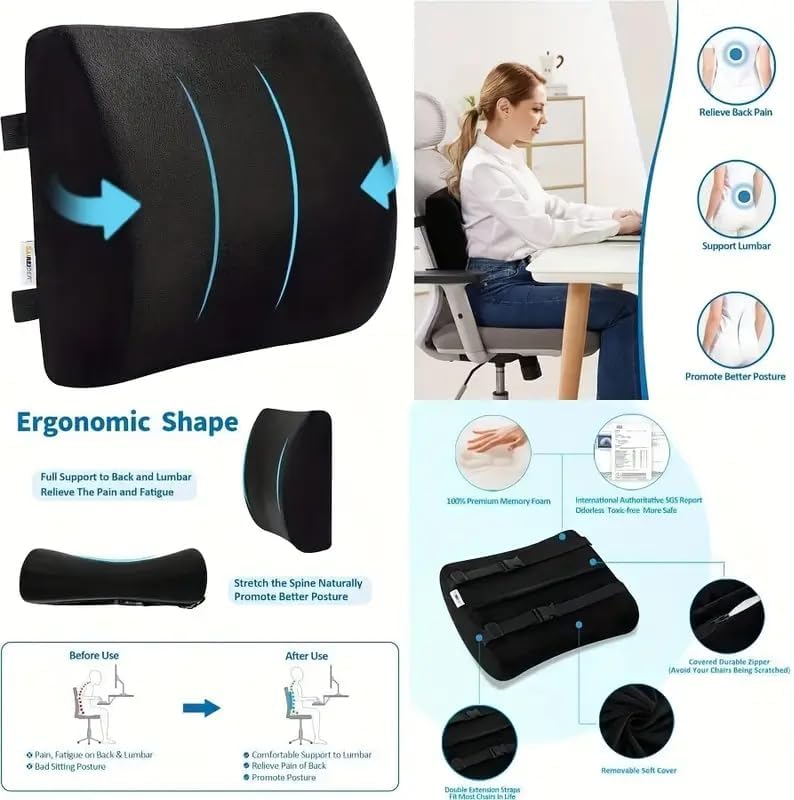 • 𝗔𝗹𝗹 𝗗𝗮𝘆 𝗖𝗼𝗺𝗳𝗼𝗿𝘁 - High memory foam contours to your spine, delivering lumbar support for office and car chair users and helping maintain neutral posture through long workdays