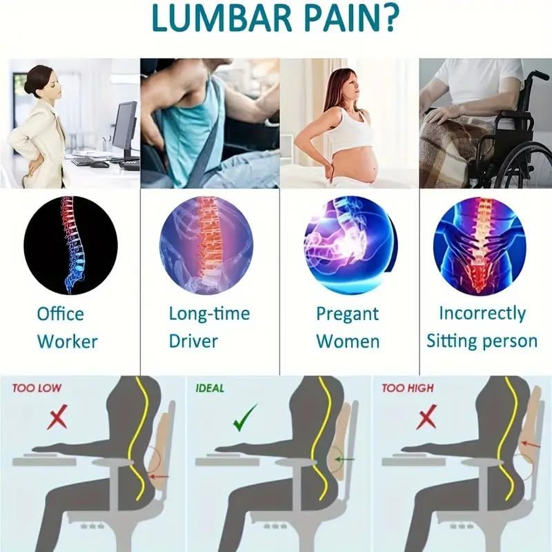 • Lower Back Pain Relief - Lumbar cushion is an efficient solution to relieve back pain, give your back rest. Ergonomic design solves the space issue between the back and chairs, supports the back curve