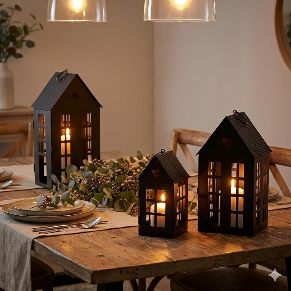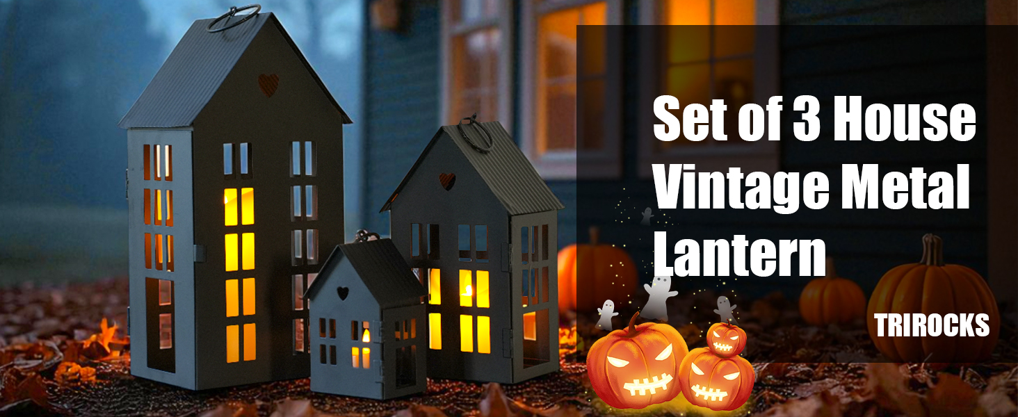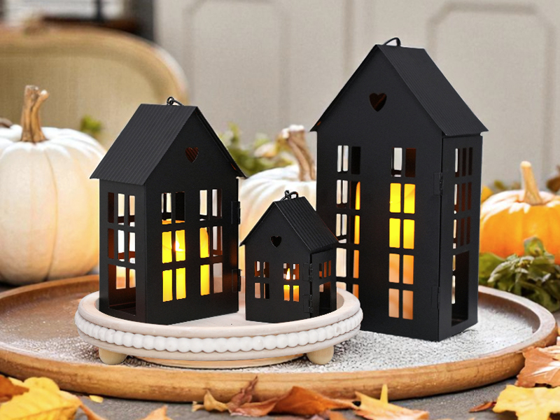 【موضوع الحصاد والهالوين】- هذه الفوانيس على شكل منزل أسود مثالية للحصاد والهالوين. بفضل تصميمها الكلاسيكي وضوء الشموع الدافئ (الشمعة غير متضمنة)، فإنها تضفي جوًا مريحًا ومخيفًا لاحتفالاتك، سواء كان ذلك تجمعًا لمهرجان الحصاد أو حفلة الهالوين.