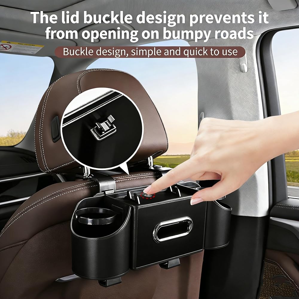 ✅ تصميم أنيق وعملي يبقى ثابتًا: تم تصميمه بعناية مع جيوب متعددة وحلقات مرنة وقاعدة ثابتة لمنع الانقلاب. يمتزج اللون الأسود البسيط بسلاسة مع أي تصميم داخلي للسيارة مع توفير أقصى قدر من الفائدة - مما يجعل كل قيادة أنظف وأكثر هدوءًا وأكثر متعة.