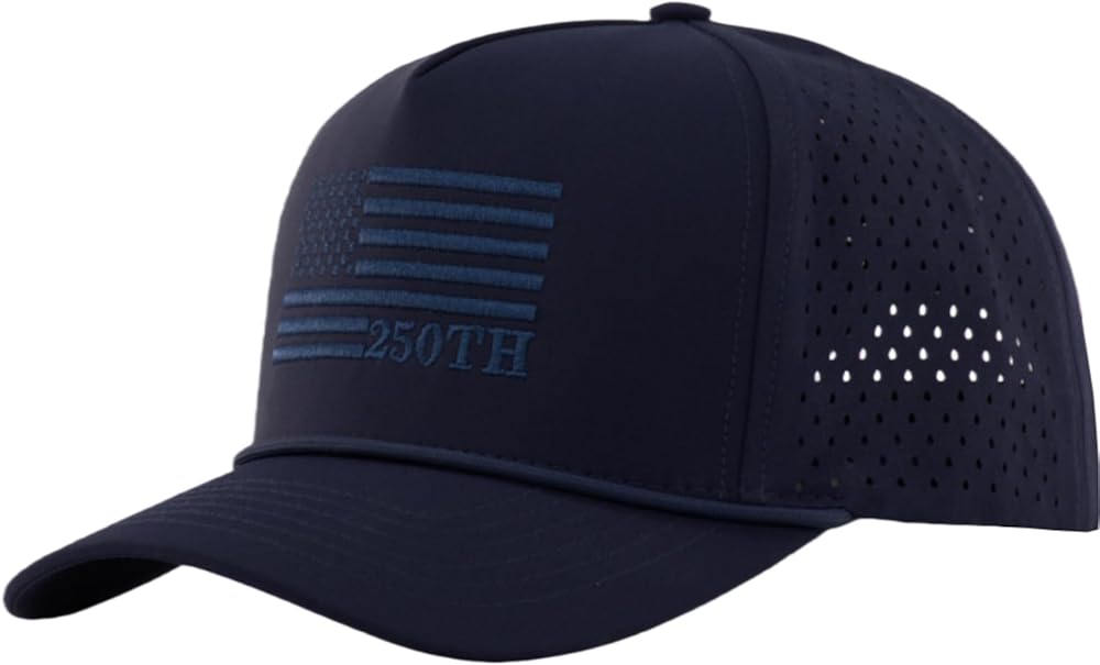 Celebrate American pride and the nation's 250th anniversary in style with this premium 250TH USA Flag Golf Hat. Designed for athletes, outdoor lovers, and anyone who appreciates patriotic gear, this snapback cap features detailed embroidery of the American flag paired with “250TH” for a bold commemorative look. Engineered with modern laser-cut ventilation panels, the hat delivers exceptional breathability, making it perfect for hot weather, golf courses, fishing trips, and everyday wear. The lightweight performance fabric keeps you comfortable, while the adjustable snapback ensures a personalized fit. Whether you're honoring America's milestone year, looking for a golf-ready mesh cap, or gifting a patriotic friend, this 250TH commemorative snapback hat blends style, function, and meaning into one standout accessory.