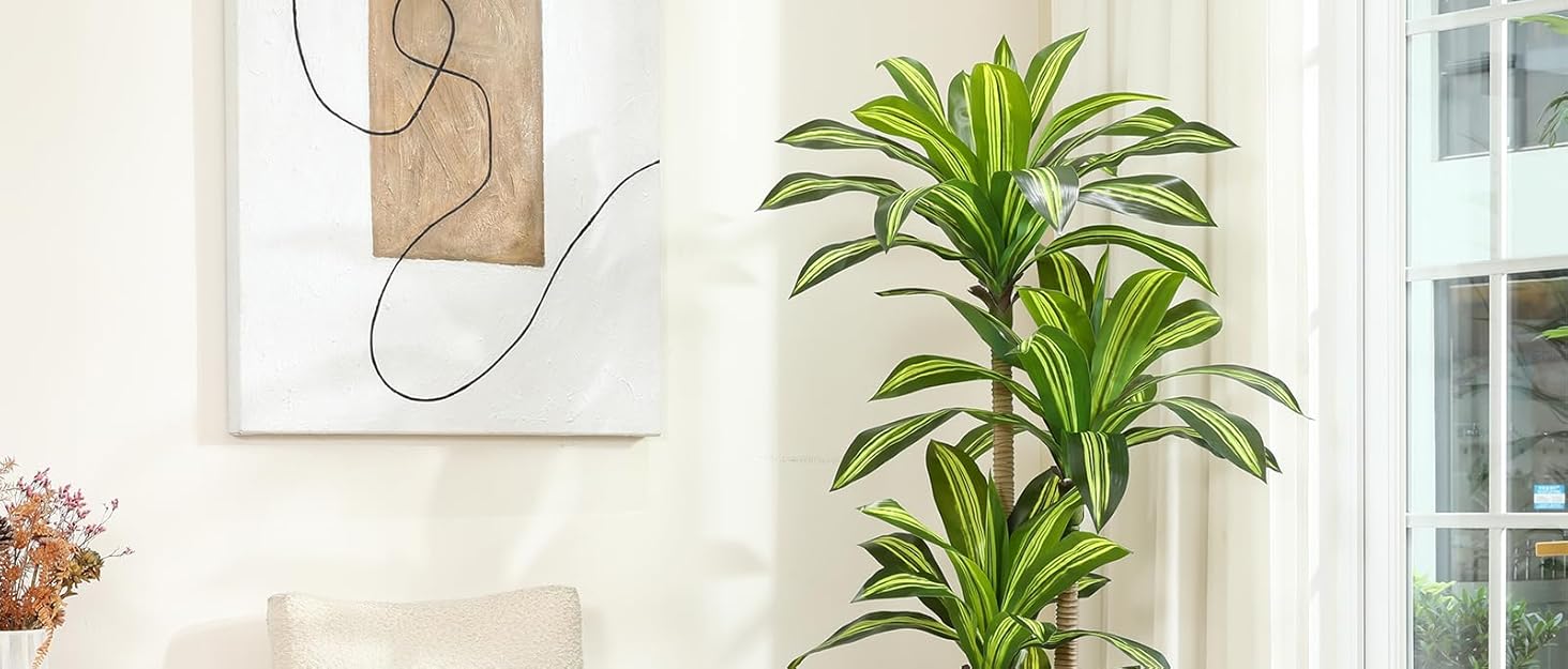 • 【5FT Tall Realistic Fake Plants, Suitable for Indoor & Outdoor Use】The 5FT dracaena tree measures is 19.7"D x 15.7"W x 59"H. It fits perfectly in small living rooms, narrow entryways, or office corners, seamlessly blending into various spaces to quickly create a green corner. The included pot can be used as is, or you can place it in your favorite decorative planter to match different decor styles.