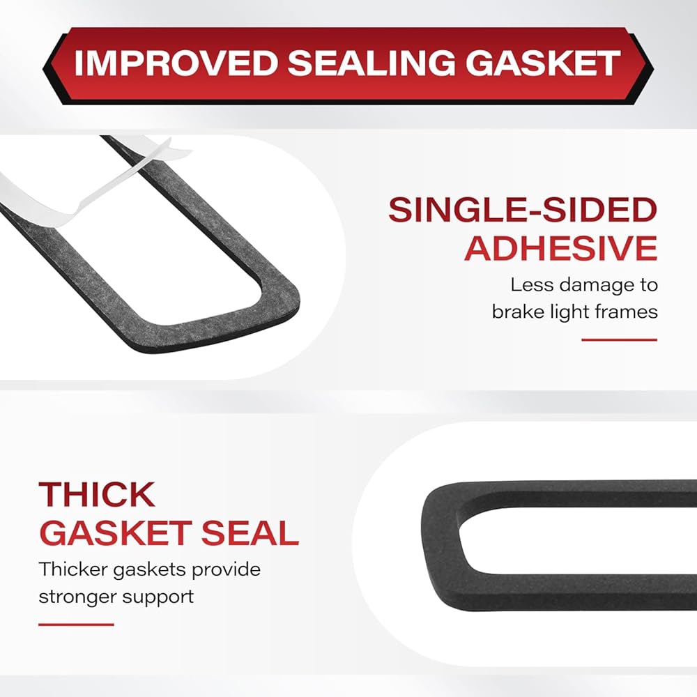 جودة فائقة: حشية ضوء الفرامل الثالثة مصنوعة من إسفنج عالي الجودة وعالي الكثافة الذي يملأ الفجوات الصغيرة في منطقة التثبيت بكفاءة ويوفر ختمًا ممتازًا ضد اختراق الماء والغبار.