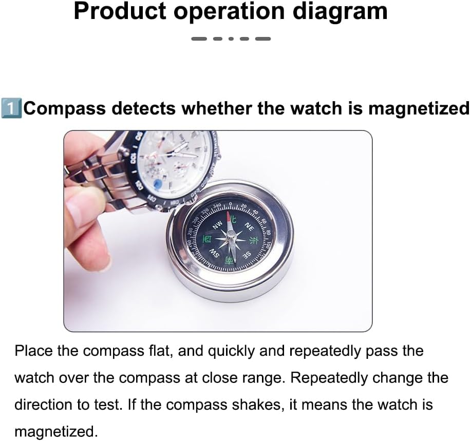 【Compass Magnetization Detection】– Includes a built-in compass to quickly detect whether a watch is magnetized by observing needle movement when the watch is passed near it.