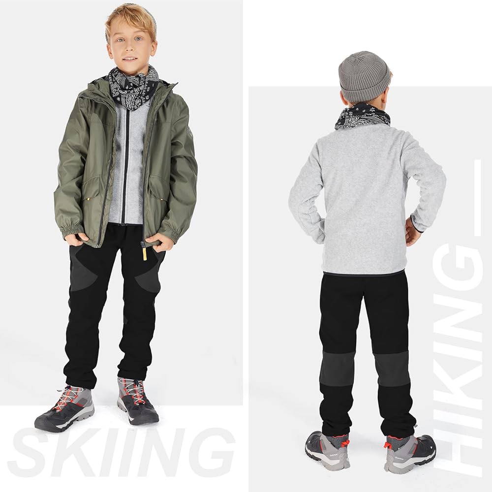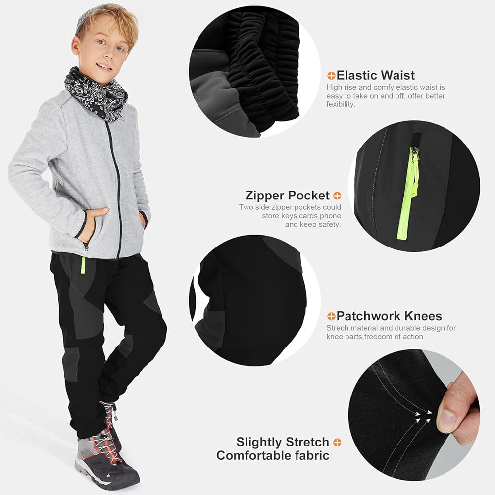 أطفال بنين بنات المشي لمسافات طويلة على الجليد السراويل التزلج للماء الشتاء الدافئة مرونة الخصر السراويل الصوف مبطنة مع جيوب سحاب #16012-أسود XXL، 14-16 سنة