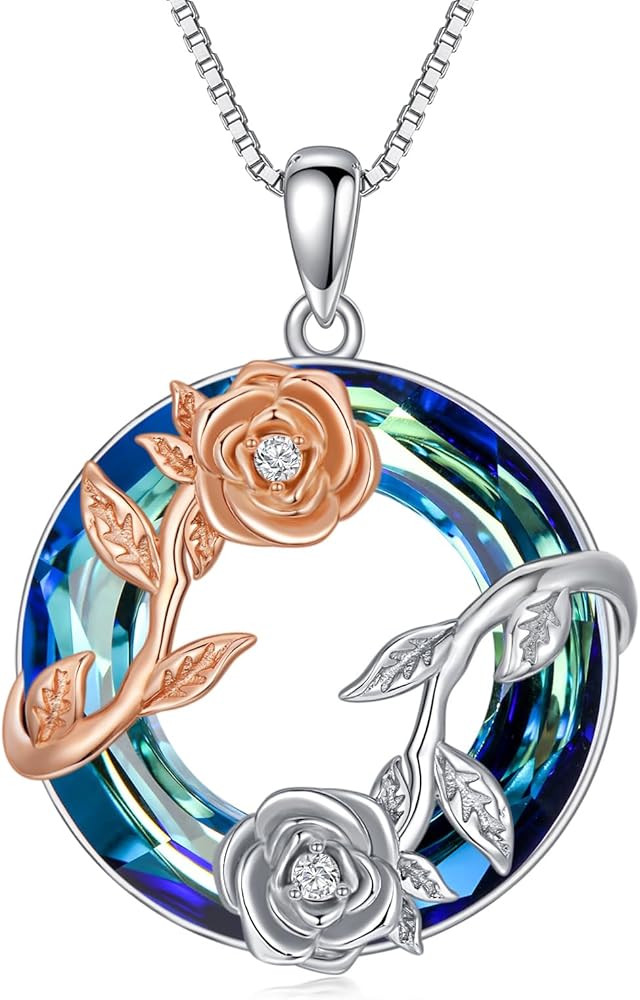 Rose Necklace: Rose Flower symbolizes romantic love. Heart symbolizes your forever love, love is never ending. The heart is set with a heart Crushed Ice gemstone make the necklace look so shining. Wearing it you will be the focus in any occasions. Trendy and elegant rose necklace is suitable for women in any occasions.