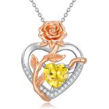 Citrine Jewelry Gifts for Women: Heart Birthstone Necklace Reflect the light beautifully, Wearing it you will be the focus in any occasions. Wonderful gift for friends, mother, wife, grandma, girlfriend, sister on Birthday Mother's Day, Engagement, Wedding and Anniversaries, Valentine, Christmas .