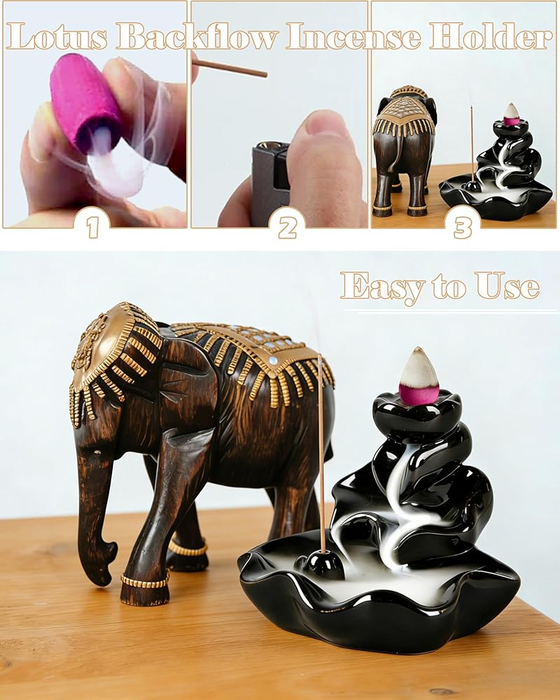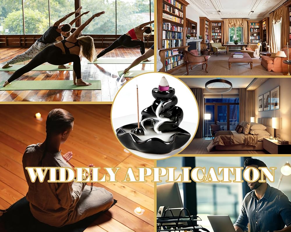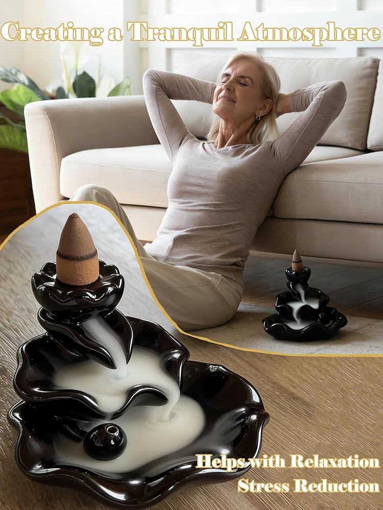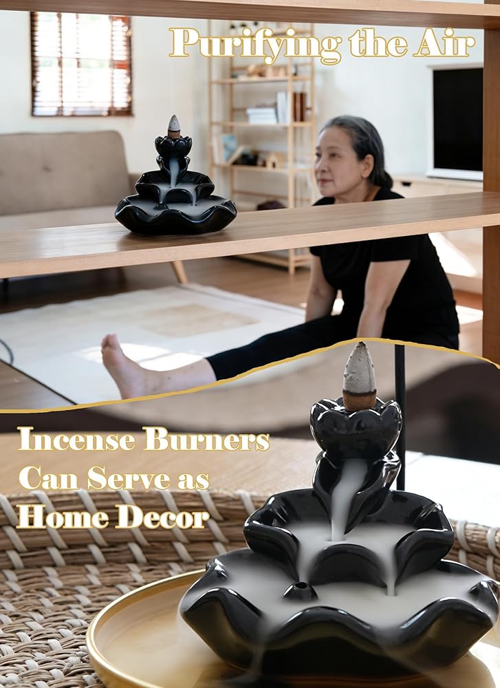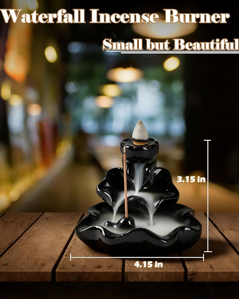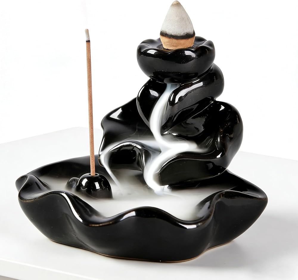 المفروشات الكلاسيكية: مبخرة الشلال مصنوعة من مادة السيراميك ذات الجمال والأناقة العالية. مصنوعة يدويًا وفريدة من نوعها، وسهلة الاستخدام. حامل البخور ذو التدفق الخلفي مشرق ومليء بالملمس
