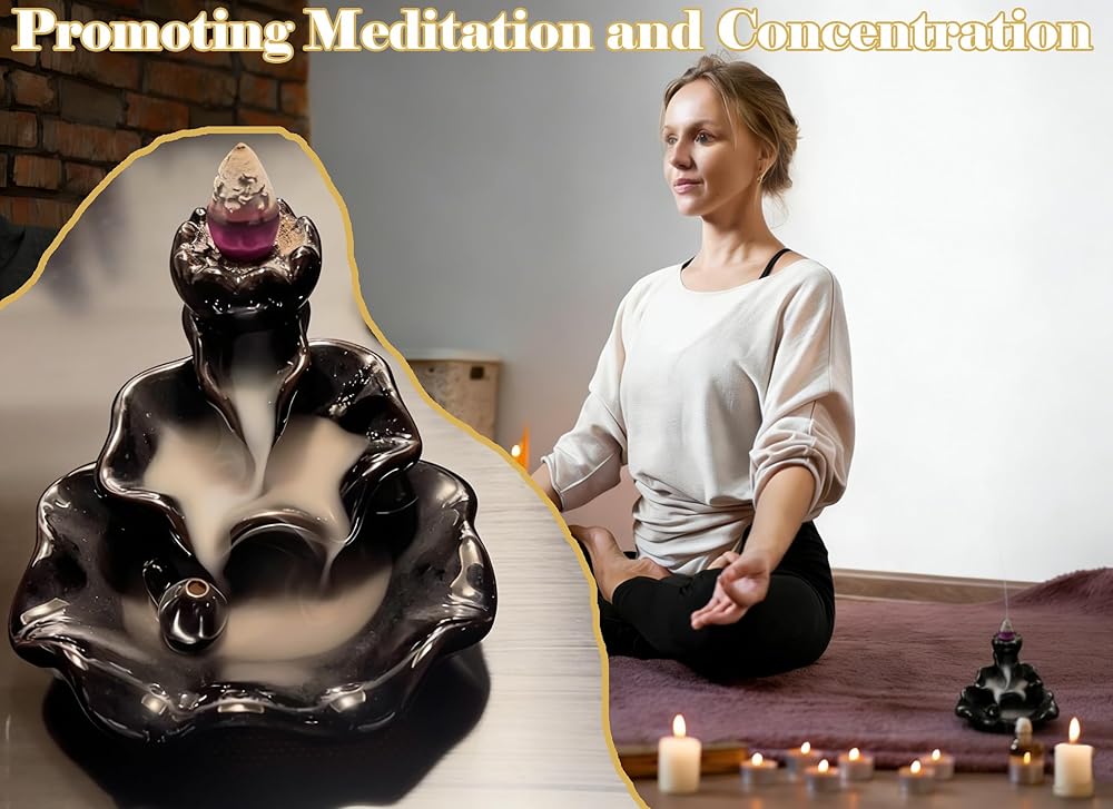 تخفيف القلق: يستخدم الموقد المخروطي البخور مع مخاريط وعصي التدفق الخلفي، مما يخلق هواءًا منعشًا ومزاجًا هادئًا ويخفف القلق، إلخ. يوفر مخروط البخور جوًا عطريًا يساهم في تقليل الألم وتحسين الصحة والتأمل وتأثير المساعدة على النوم. يمكنه نسيان المشاكل والتخلص من التوتر