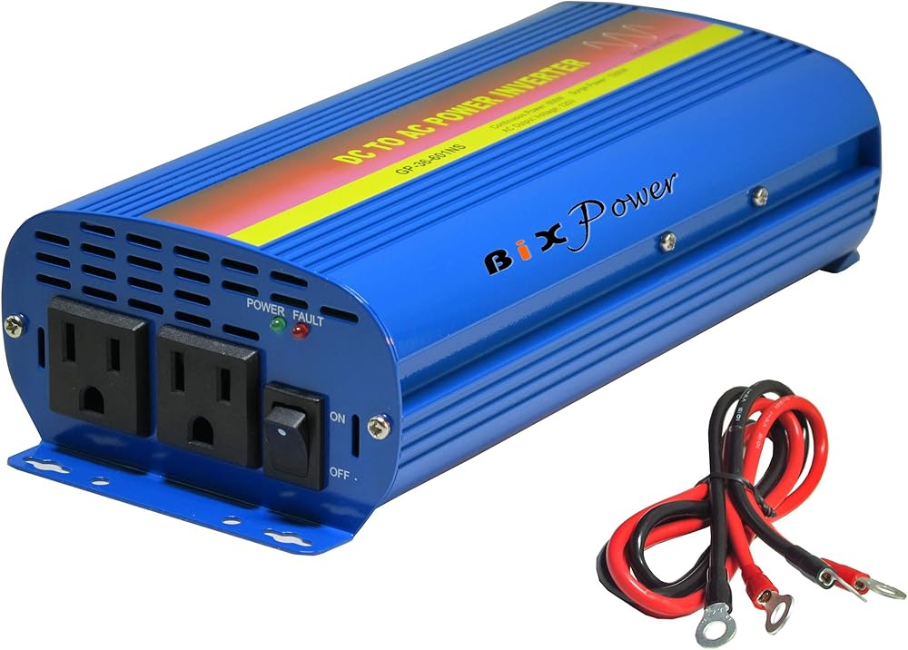 This power inverter can convert DC power from a 36V (29V ~ 45V) battery into 110V 60Hz AC power. It has two 3-hole AC sockets which accept both 2-pin and 3-pin any style AC plugs.