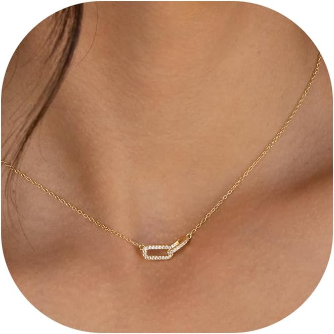 • ✨Dainty paperclip design with sparkling CZ stones for everyday elegance. This lightweight, open-oval pendant follows the popular paperclip necklace trend. Subtle sparkle adds a touch of glam to work outfits, dates, or casual wear.