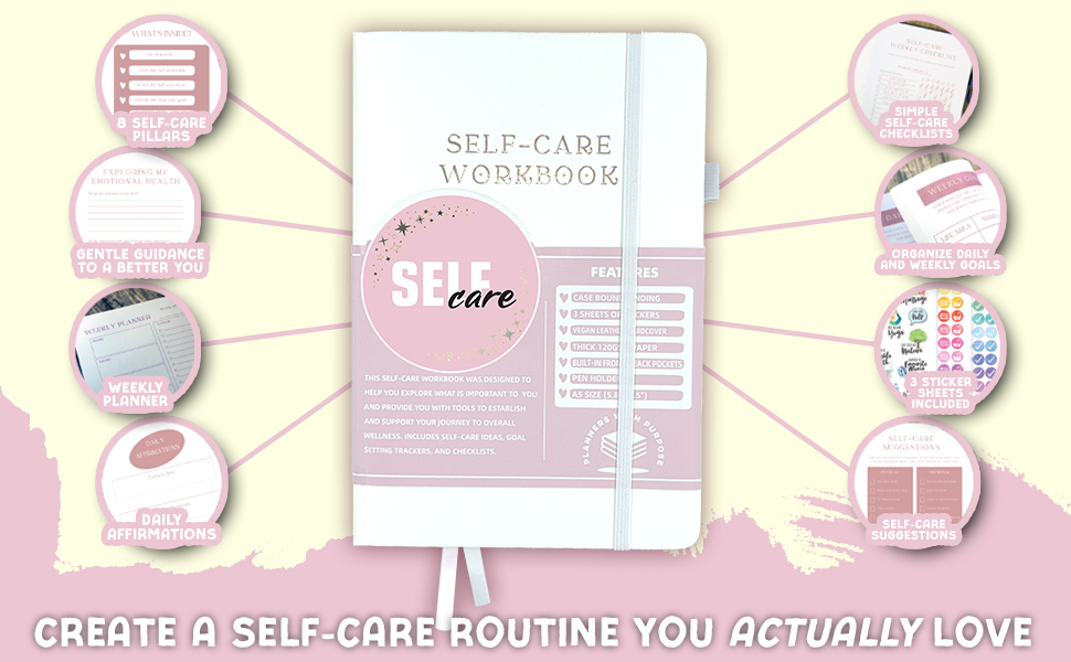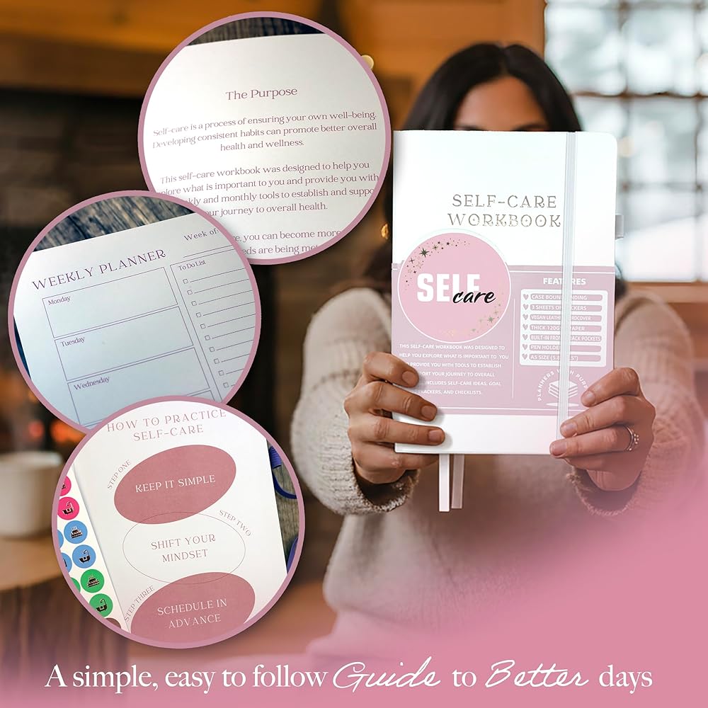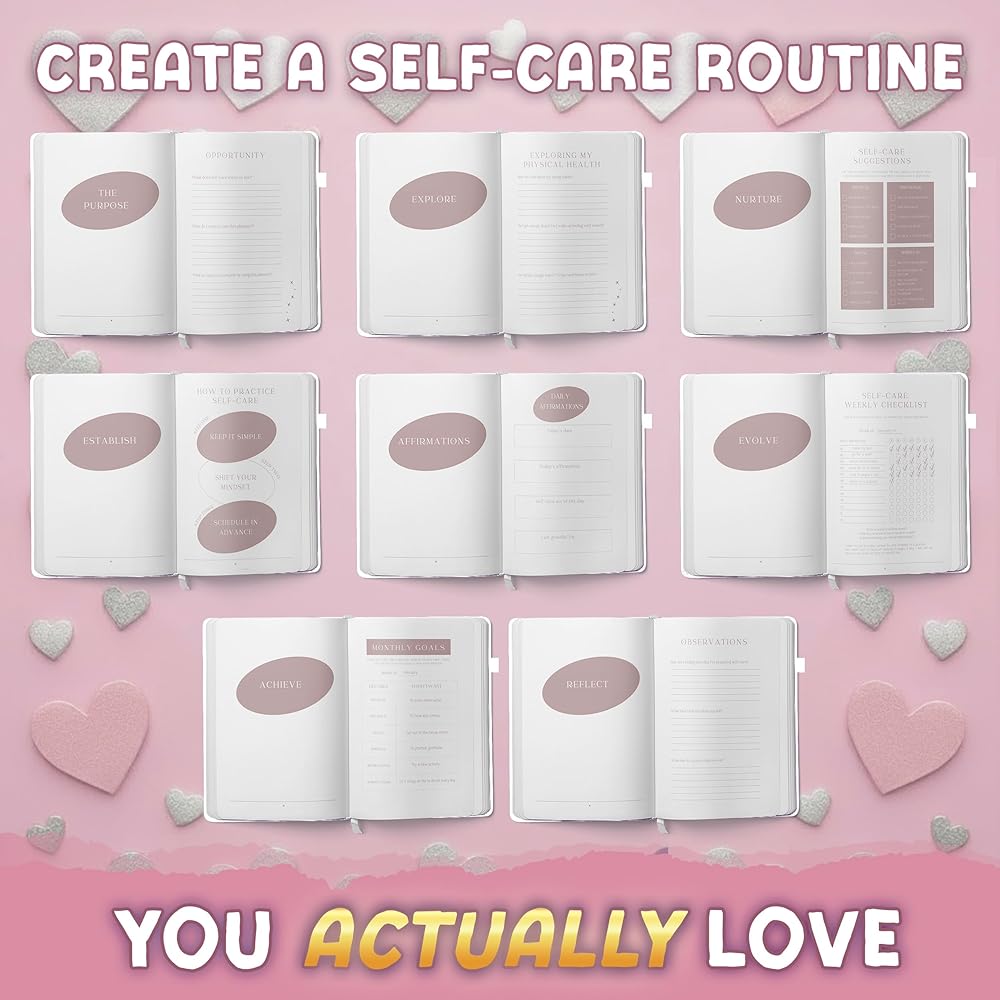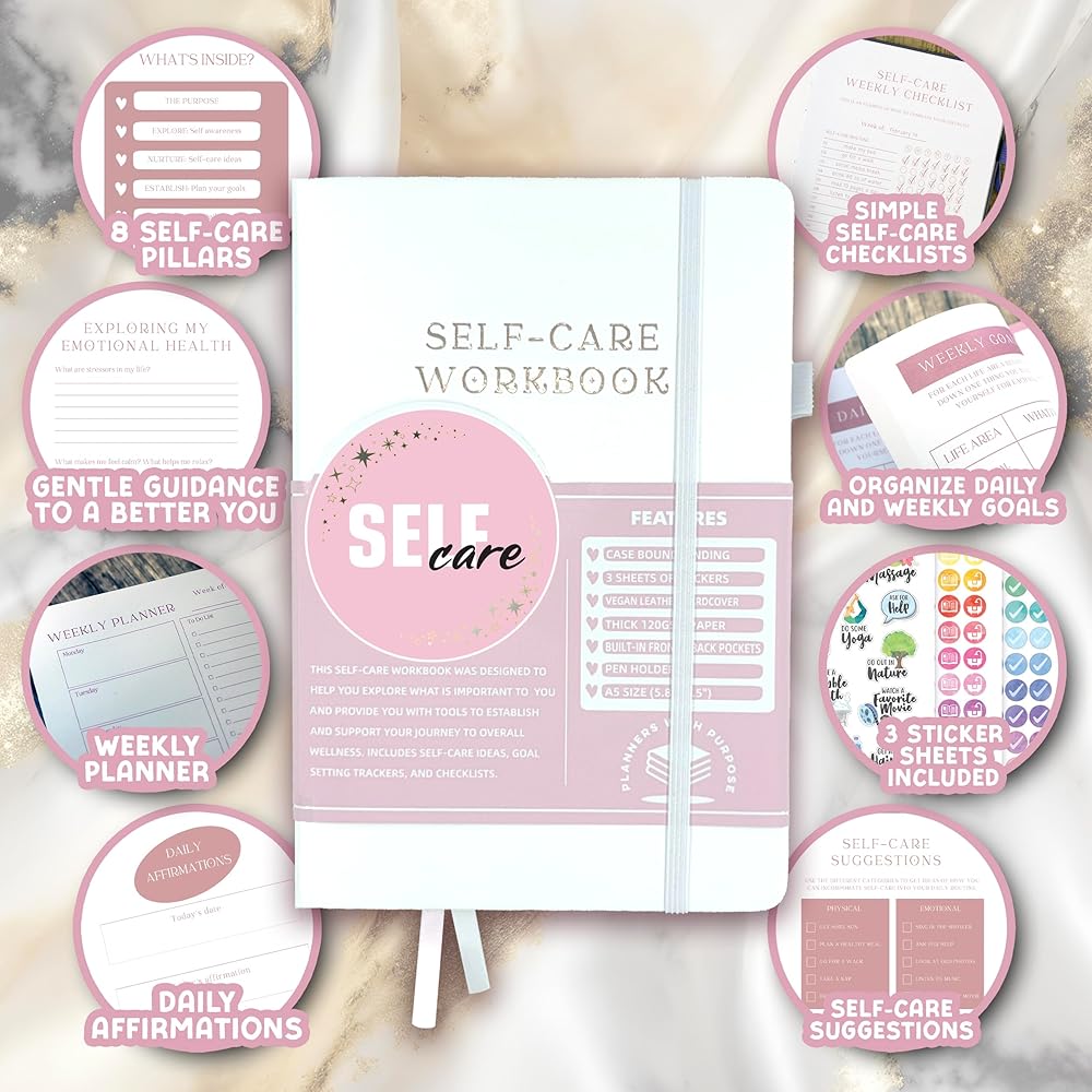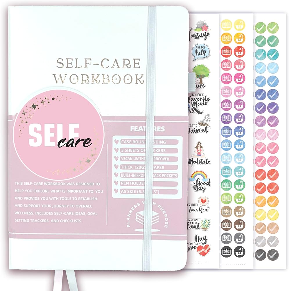 مخطط الرعاية الذاتية للنساء - مجلة العافية واليقظة مع المطالبات الإرشادية، وتمارين الحب الذاتي والامتنان - دفتر ملاحظات يومي للانعكاس وتحديد الأهداف - غلاف فني جمالي A5 (أبيض)