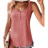 This Women's Sleeveless Top Has Buttons At The Front That Can Be Undone To Accentuate The Neckline And Reveal A Hint Of Cleavage, Creating A Charming And Alluring Look. The curved hemline cleverly conceals unwanted curves, seamlessly blending fashion with functionality.