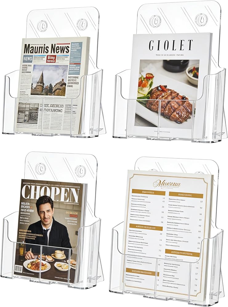 Acrylic Brochure Holder 8.5 x 11 inches for Desk or Wall Mount, Clear Flyer Display Stand Plastic Table Stand Sign Literature Holder for Magazines, Menus, Pamphlets, Journals, Booklets, Documents