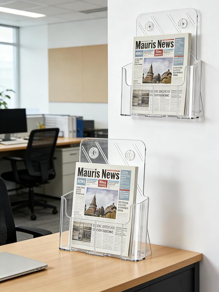 Crystal-Clear Visibility: Made from high-quality transparent plastic, the holder provides an unobstructed view of your displayed content, ensuring headlines, graphics, and text remain prominently visible to attract attention
