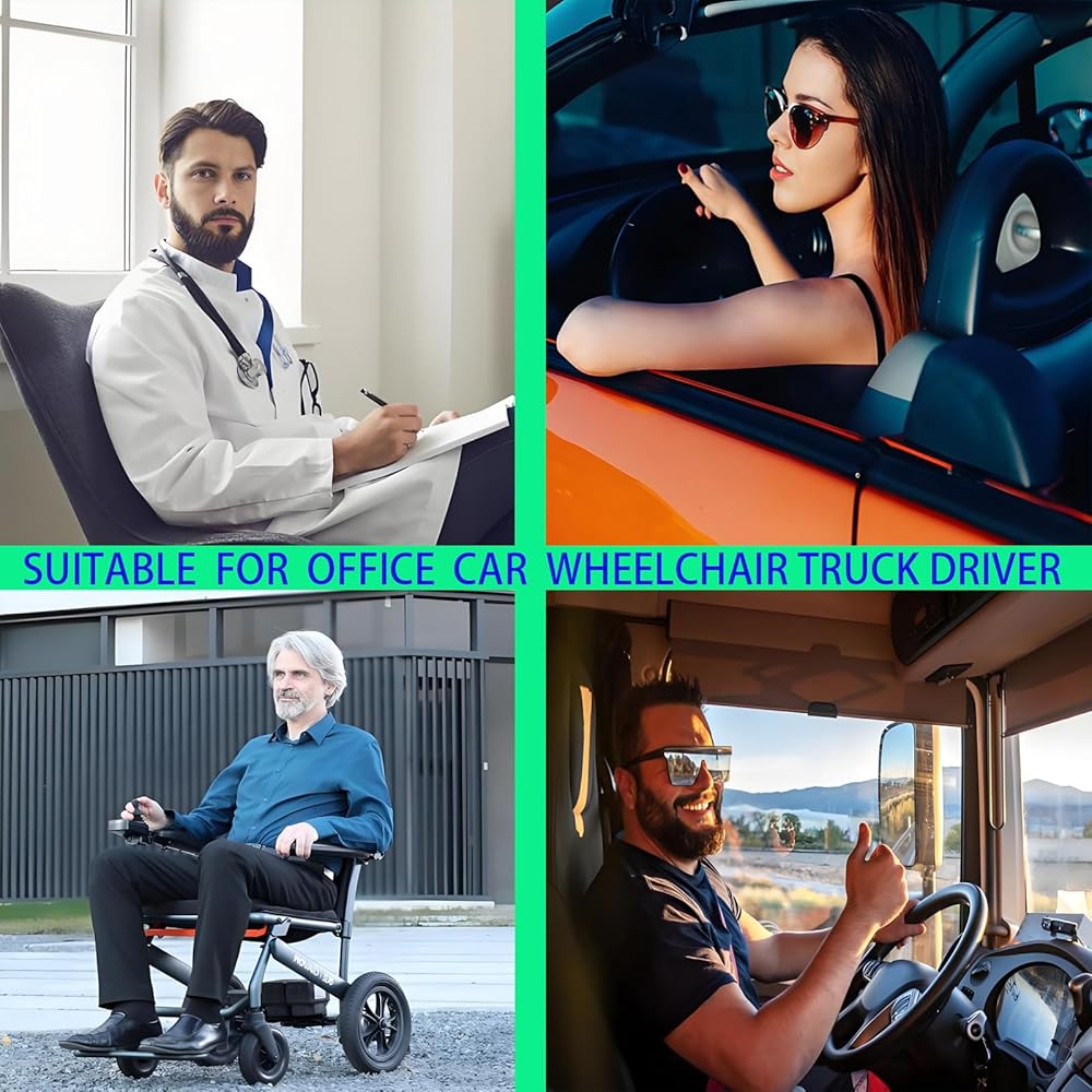 ✅【ملاءمة عالمية - السيارة والشاحنات والمكتب والمزيد】 هذه الوسادة مثالية للاستخدام في السيارات والشاحنات وسيارات الدفع الرباعي وكراسي المكتب والكراسي المتحركة. إنها ترفع ارتفاعك قليلاً عند الجلوس، مما يحسن الرؤية على الطريق ووضعية الجسم - مما يجعلها واحدة من أكثر وسائد مقاعد السيارة تنوعًا للقيادة.