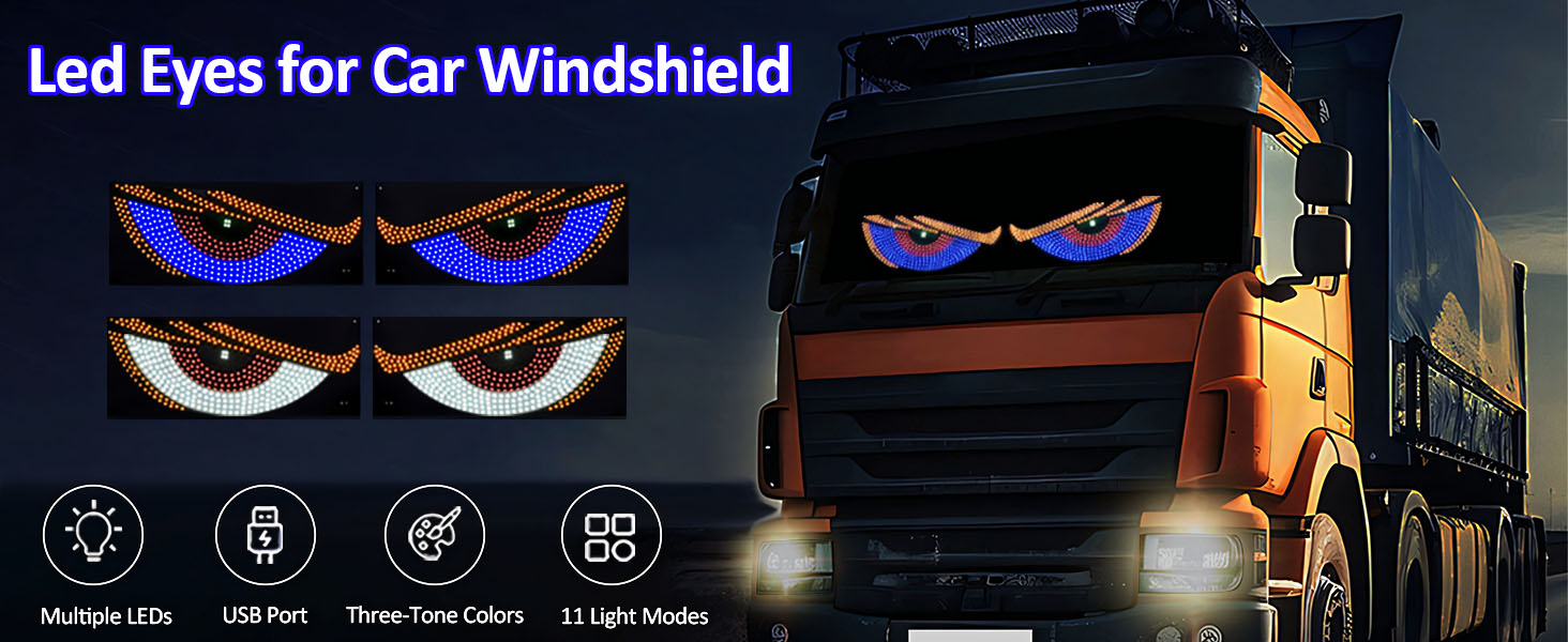 سهلة التركيب: عيون LED للزجاج الأمامي للسيارة مصنوعة من لوحات LED، وهي رقيقة جدًا وخفيفة الوزن. مع الشريط المصاحب على الوجهين، يمكن تثبيتها بإحكام على سطح النافذة ويمكن إزالتها بسهولة دون ترك علامة. فقط قم بتوصيل منفذ USB المتضمن، وستكون جاهزًا للتألق - إنها حقًا التوصيل والتشغيل!