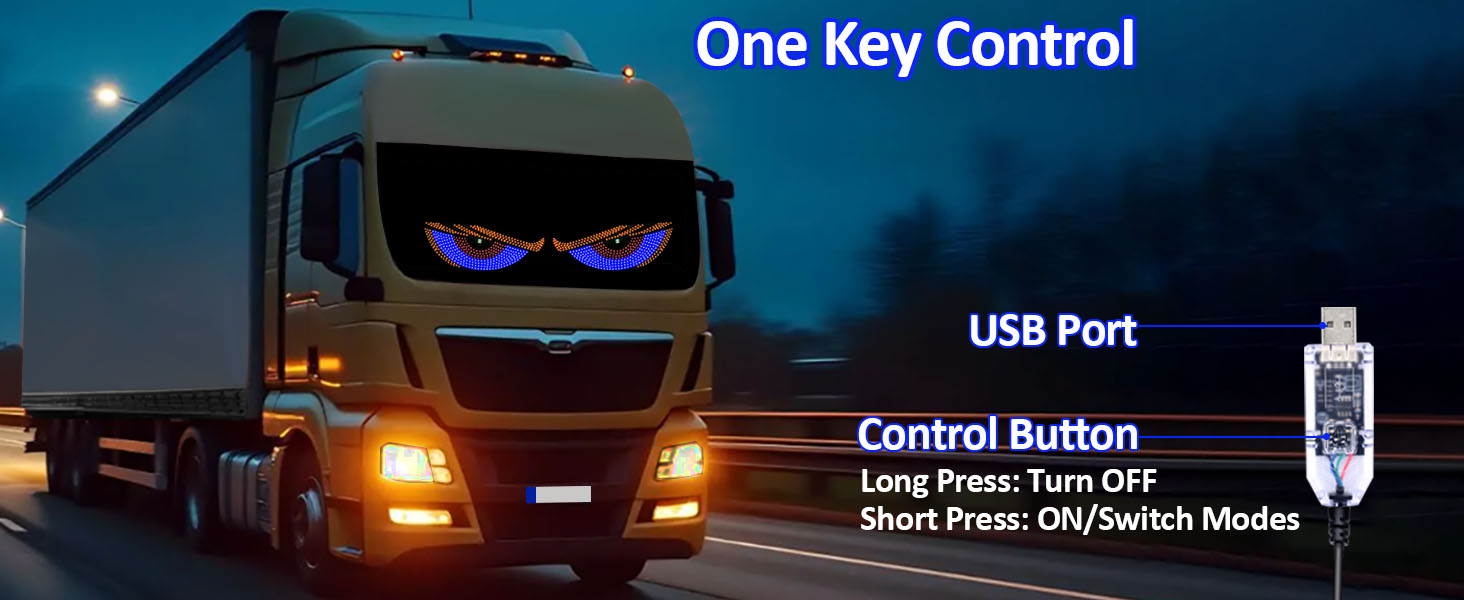 أضواء عين الشيطان للتحكم بمفتاح واحد: ضوء إشارة LED بعيون الشيطان للسيارات سهل الاستخدام بنقرة واحدة فقط على الزر الموجود على قابس USB. اضغط لفترة طويلة على إيقاف التشغيل، أو اضغط لفترة قصيرة للتشغيل أو تغيير الأوضاع. لن تضطر إلى إبعاد عينيك عن الطريق، مما يضمن القيادة الآمنة أثناء التعبير عن مشاعرك في أي وقت.