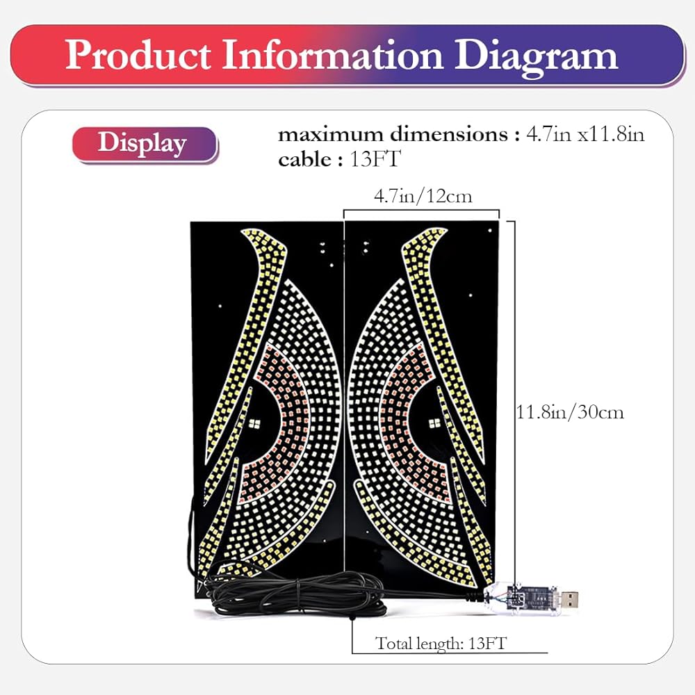 ضوء عيون الشيطان للسيارات، عين LED للسيارة، شاشة LED مرنة للسيارة مقاس 4.7 بوصة × 11.8 بوصة، عيون الزجاج الأمامي المتحركة، أضواء عين كبيرة ديناميكية مخصصة للزجاج الأمامي للسيارة