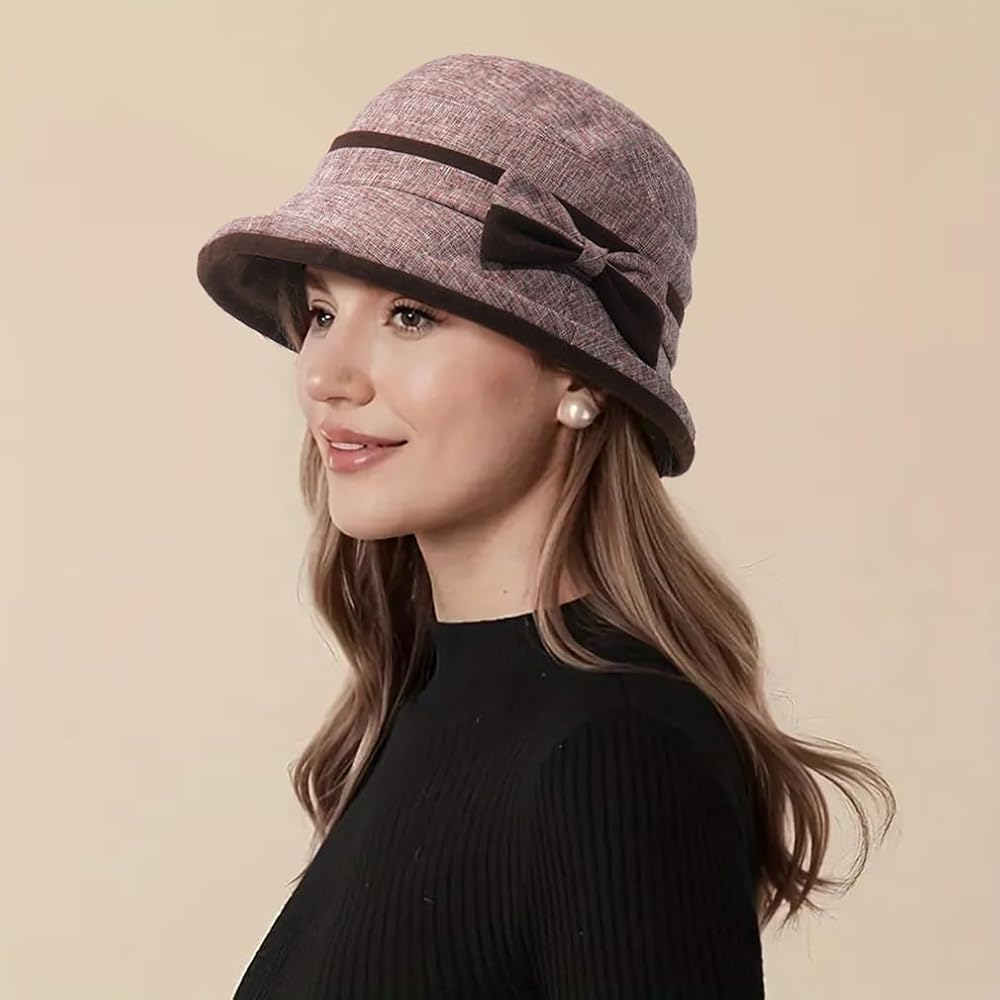 قبعة Initlove النسائية ذات الطراز الكلاسيكي من فيدورا ذات حافة ملفوفة مع عقدة على شكل فيونكة