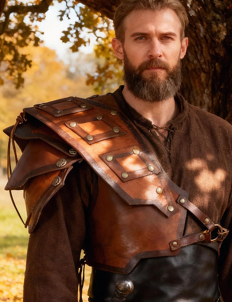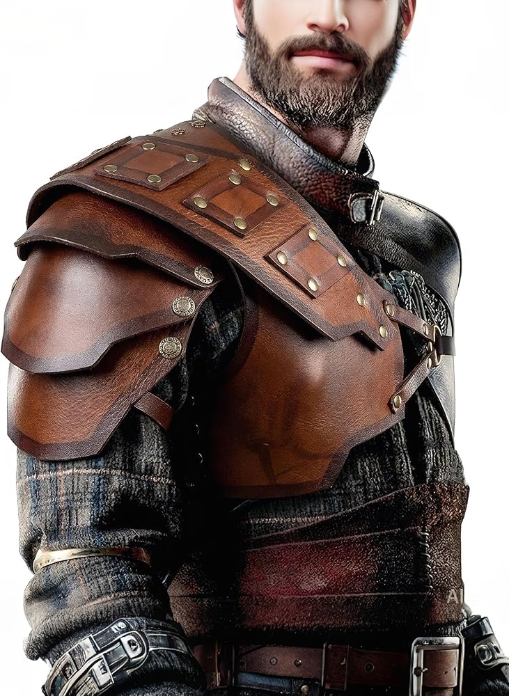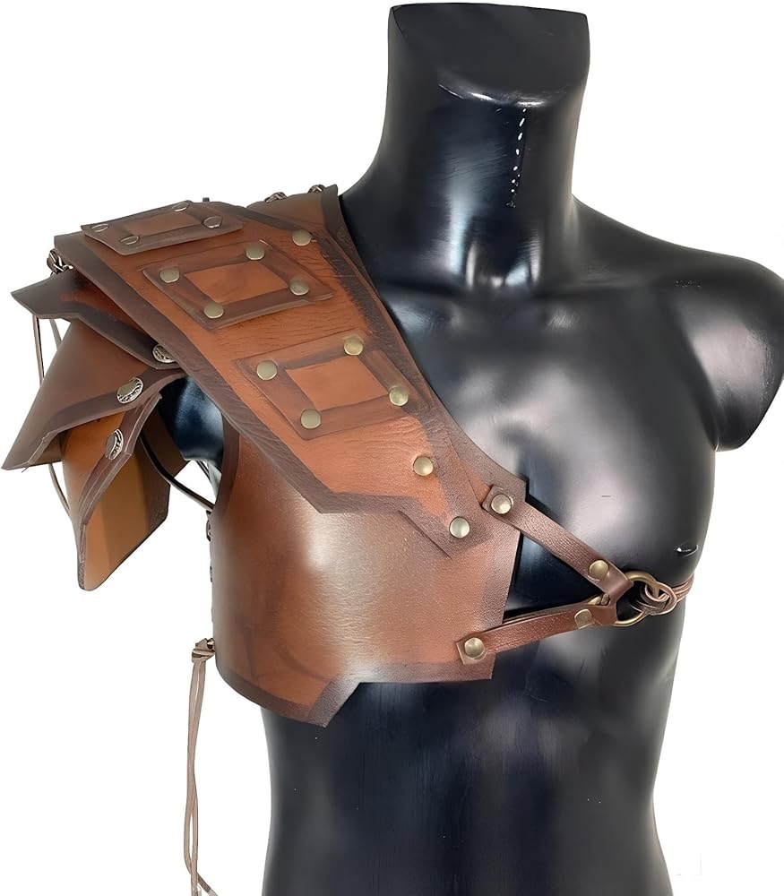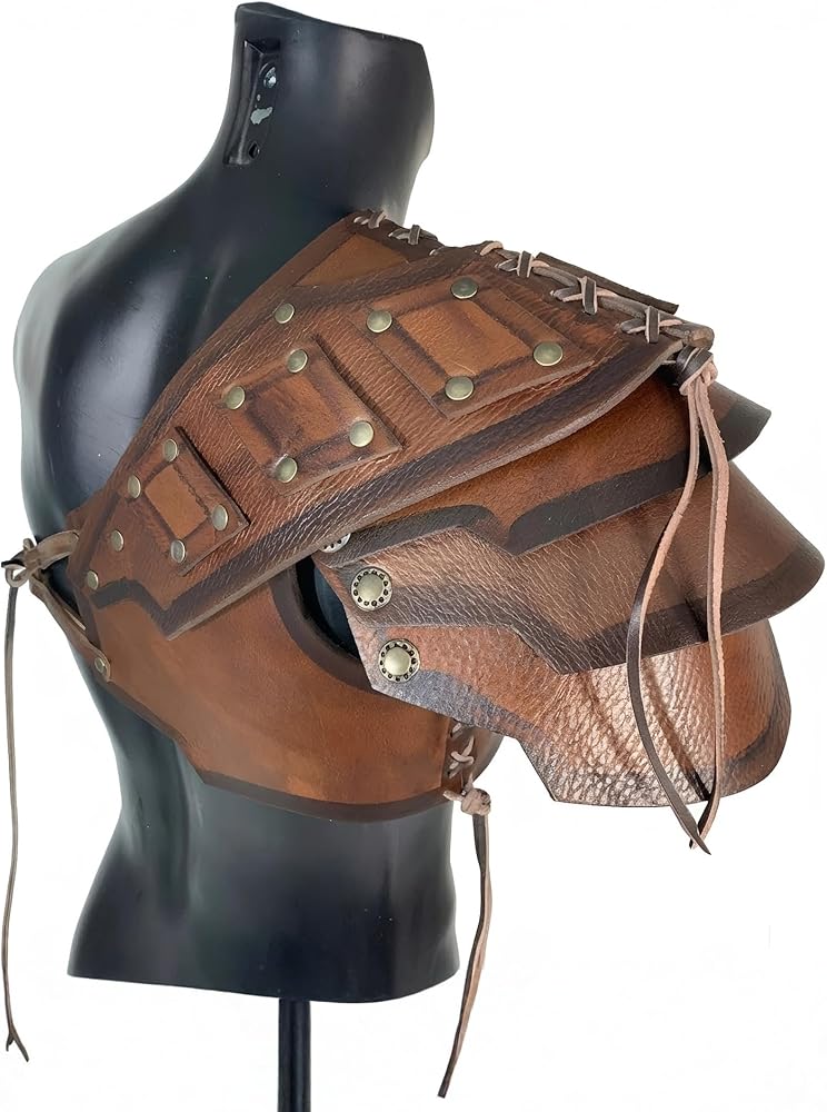أزياء العصور الوسطى لفارس عصر النهضة الجلدية للكتف من الفايكنج بولدرونز للرجال والنساء باللون البني