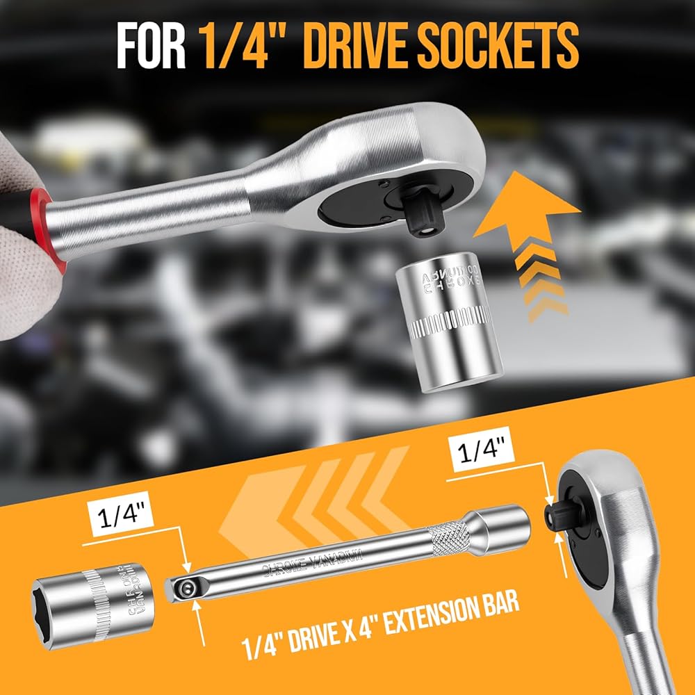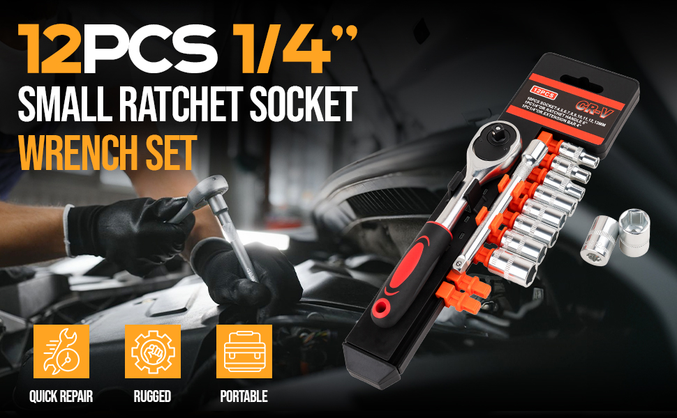 مجموعة مقابس محرك 12 قطعة مقاس 1/4 بوصة، مجموعة مفاتيح ربط بسقاطة صغيرة ممتازة، مجموعة مفاتيح ربط بسقاطة صغيرة مترية، مع شريط تمديد بسقاطة 1/4 للسيارة والسيارات والإصلاح المنزلي