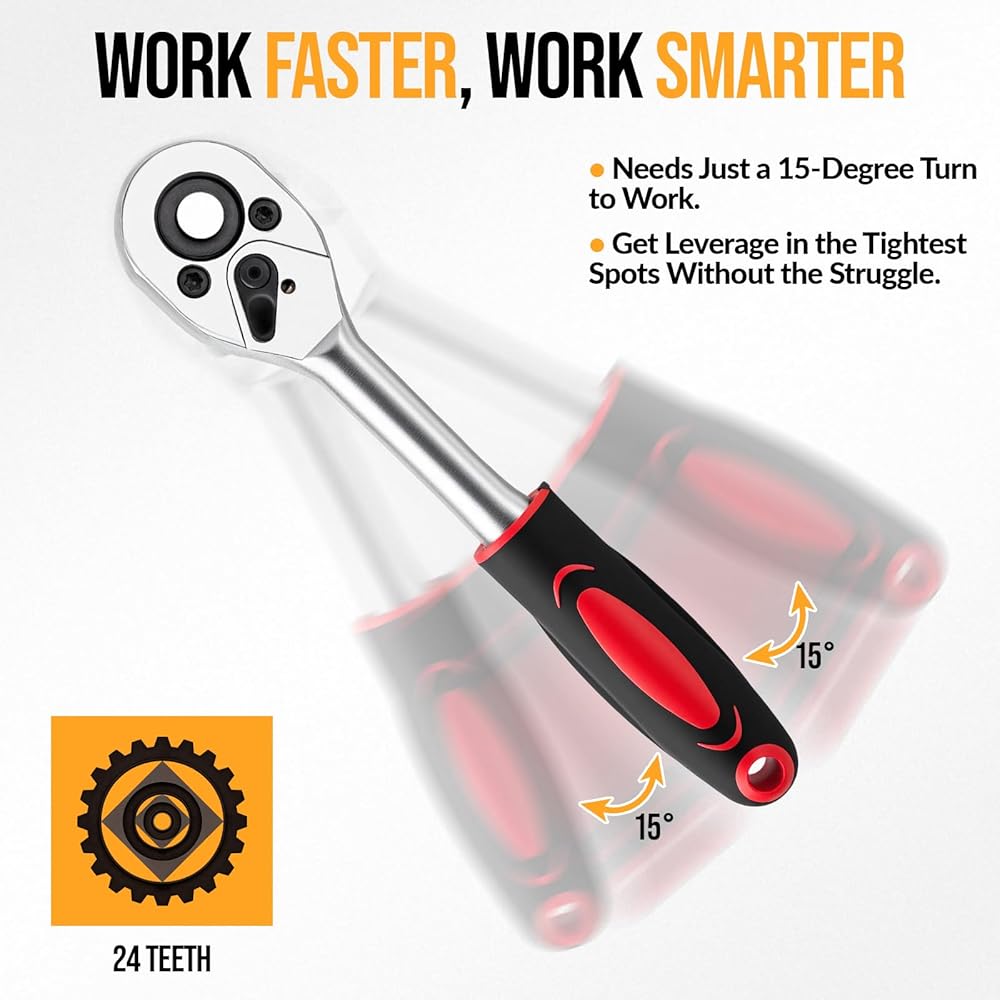 • عمل تصعيد بدون جهد: يتميز مفتاح السقاطة الخاص بنا بمقبض مريح ومفتاح اتجاه سهل. تم تصميم رأسه المدمج للوصول إلى المناطق المحدودة، مما يساعدك على العمل على أجهزة الخزانة أو الأجزاء الداخلية للمركبة مع تحكم أكثر سلاسة