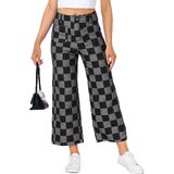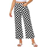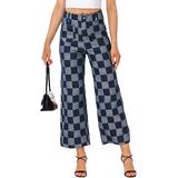 Features: Cropped Length, Straigth Leg, Breezy Wide Leg, High Waist, Classic Checkered Design, Pockets.