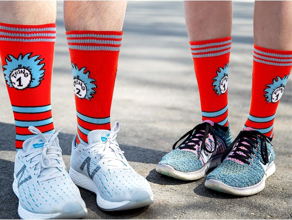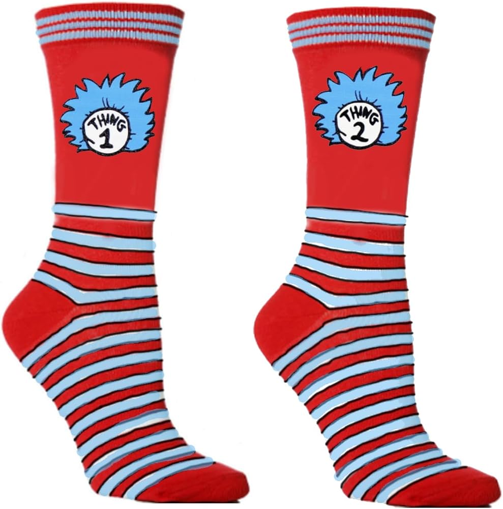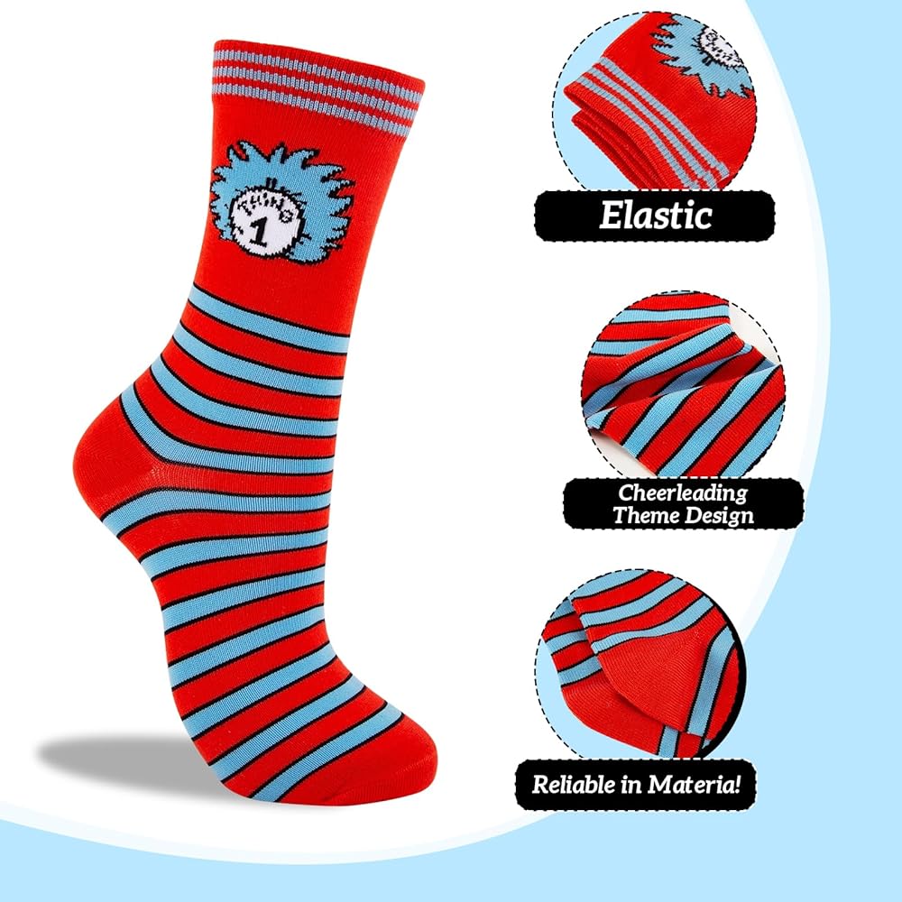 Standard Size: The comfy cute socks for featuring suess patterns fit most teens and adults;Crazy socksSize: 10-13,Fits Shoe 8-12 (Men's),Fits Shoe 6-13 (Women's)