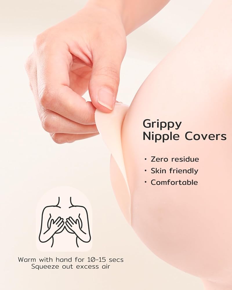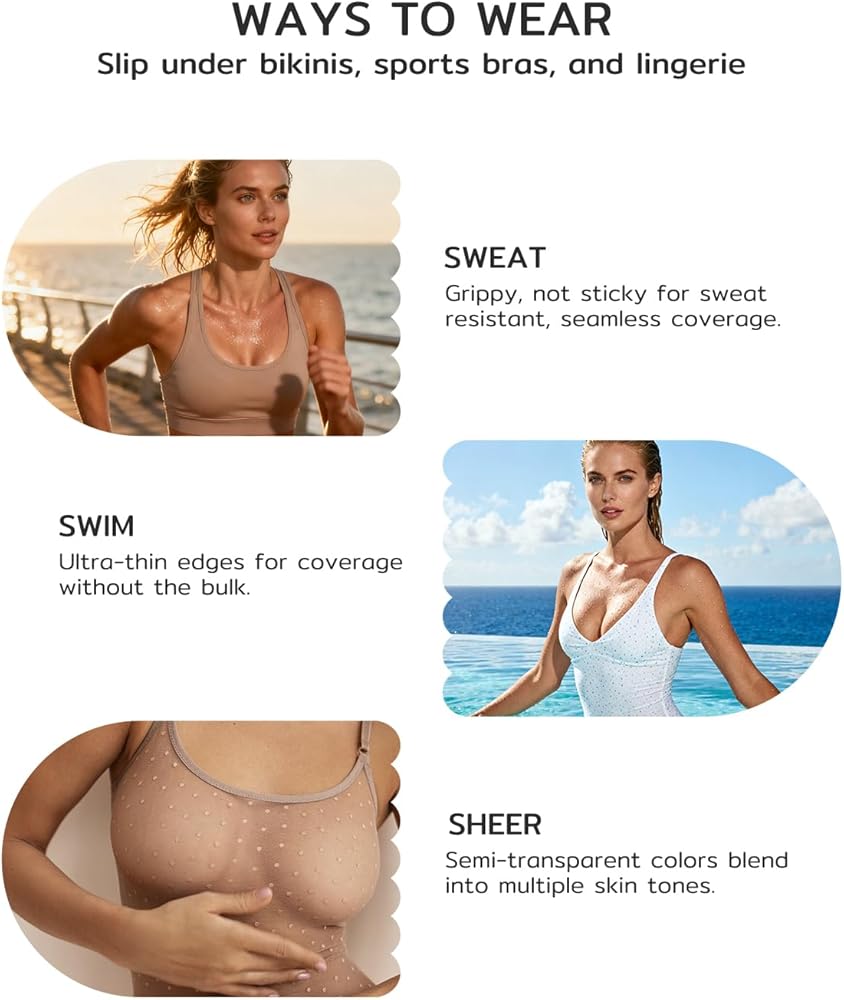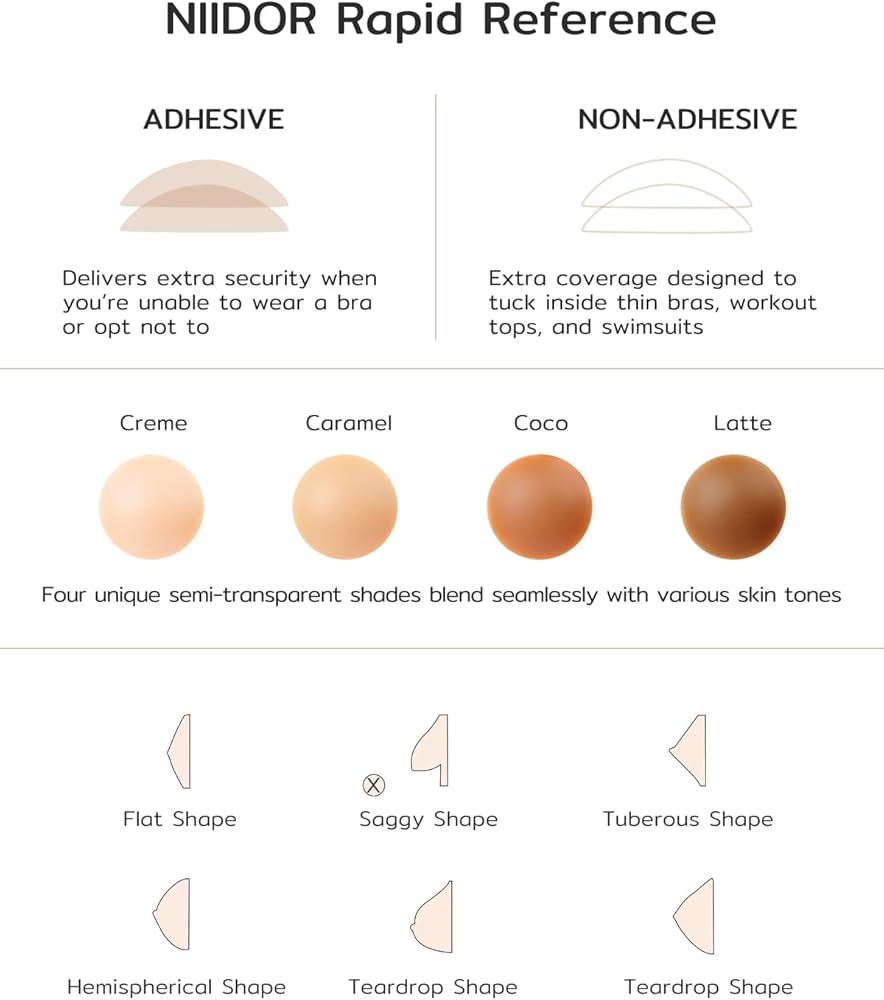 أغطية حلمات غير لاصقة للنساء من Niidor - فطائر سيليكون غير مرئية قابلة لإعادة الاستخدام - مثالية للسباحة والرياضة والاستخدام اليومي - ملصقات سلسة مع حقيبة سفر (cocco,S)