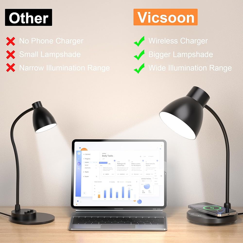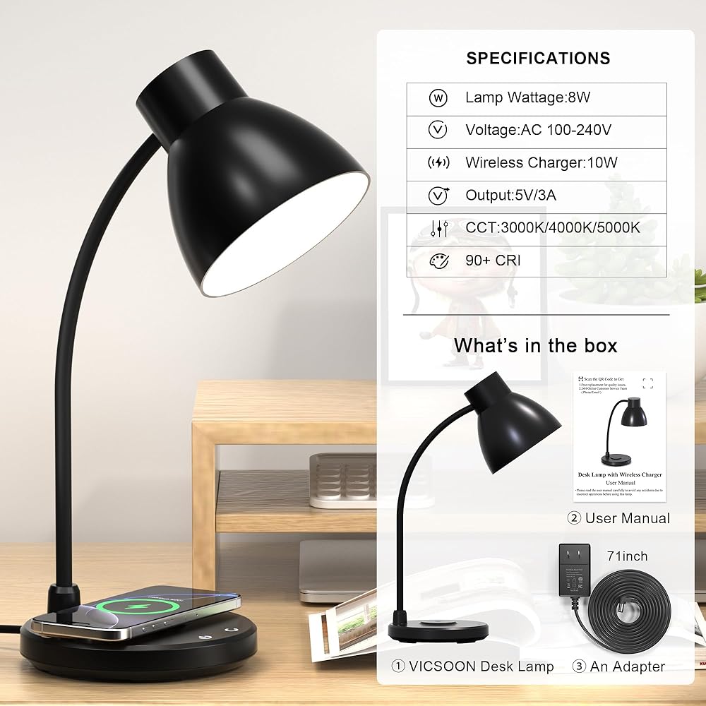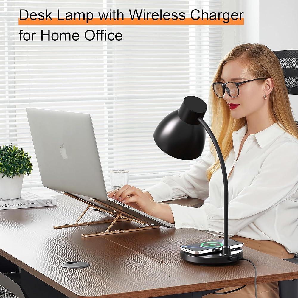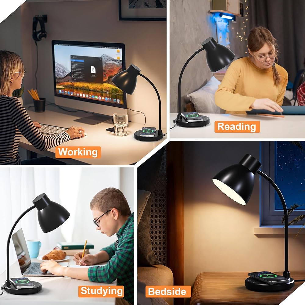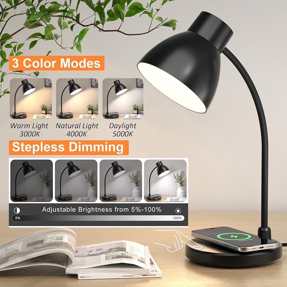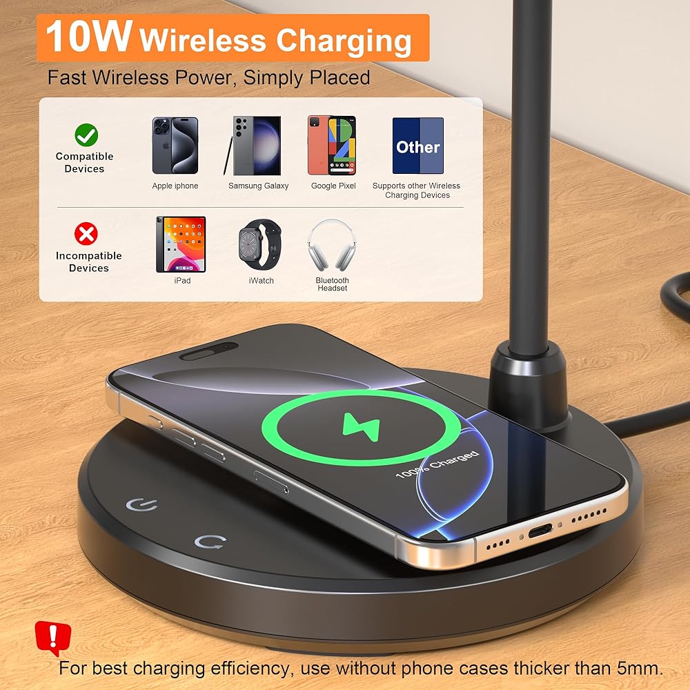 شحن لاسلكي 10 وات: يتميز مصباح مكتب LED هذا بشاحن مدمج 10 وات لهواتف iPhone وAndroid. ما عليك سوى وضع جهازك على القاعدة لشحن ثابت بدون كابل. إنها تحافظ على مكتبك نظيفًا وفعالاً، مما يجعلها الخيار الأمثل للمصابيح المكتبية الحديثة لإعدادات المكاتب المنزلية