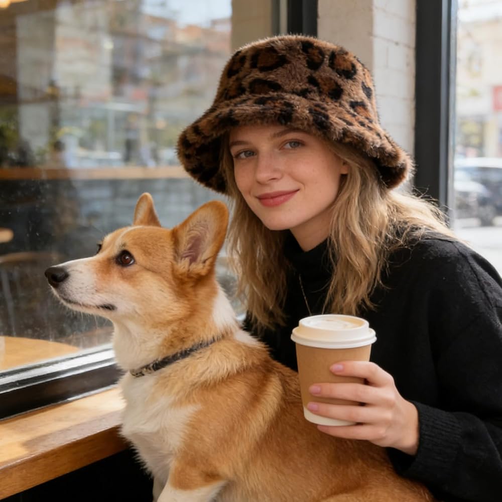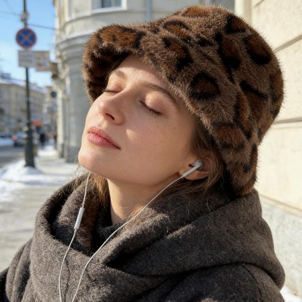 The fluffy appearance creates a stylish furry hat look that enhances winter outfits, whether paired with coats, sweaters, dresses, or casual wear. Its fuzzy hat design adds volume and charm, making it a great choice for daily use, travel, shopping, gatherings, vacations, and outdoor winter activities. As fuzzy bucket hats for woman, it complements many fashion styles, offering both warmth and versatility