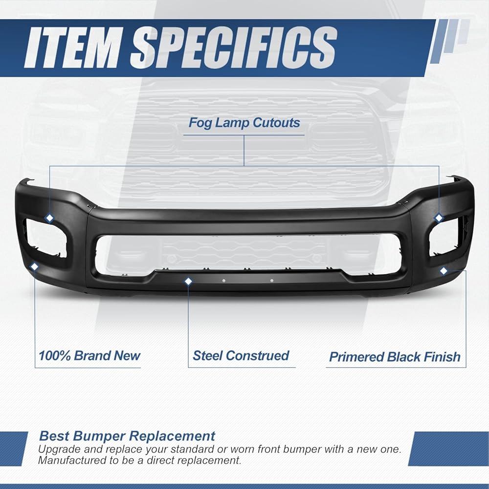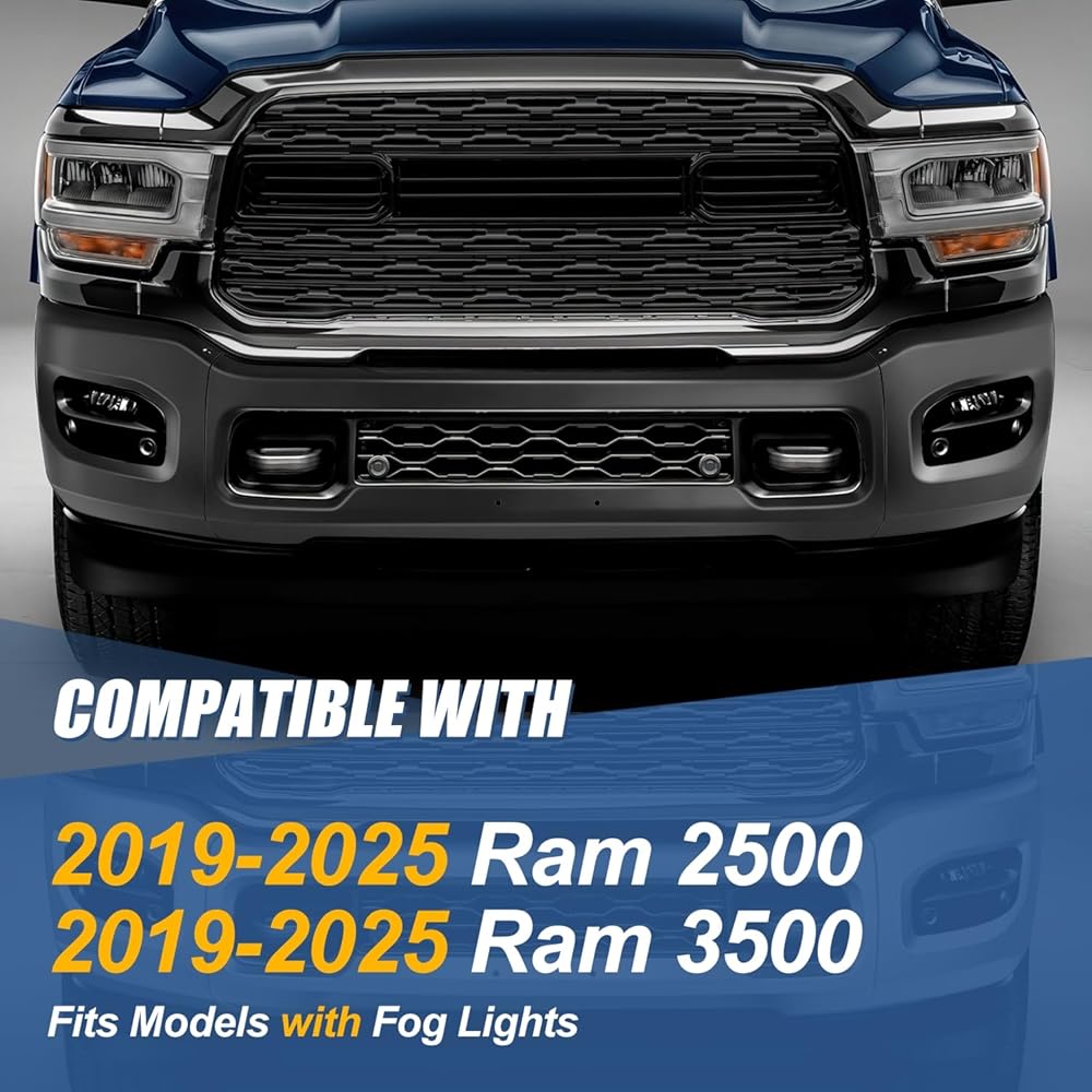 توافق السيارة - المصد الأمامي متوافق مع رام 2500 2019-2024، رام 3500 2019-2024، يناسب الموديلات ذات مصابيح الضباب