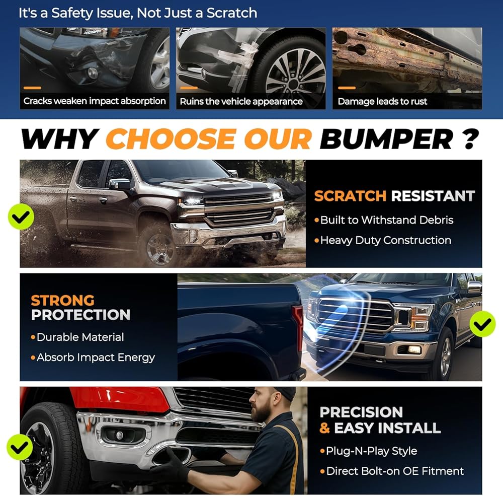 تصميم هيكل متين - المصد الأمامي مصنوع من الفولاذ عالي الجودة مما يضمن مقاومة ممتازة للصدمات والماء مع ضمان عمر طويل الأمد في أي ظرف من الظروف.