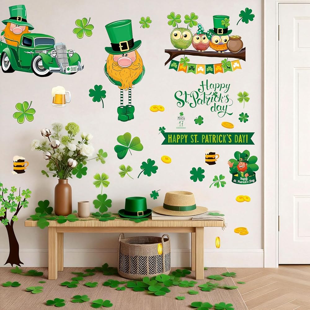Convenient to Use: Self-adhesive st patricks day party decorations wall decal is easy to stick on your wall. Just peel and stick decal to your wall, no need to use transfer glue and no cutting. If you want to tear the wall decals, just use hair dryer with its hot wind, then you can detach this decal at ease, without adhesive trace.