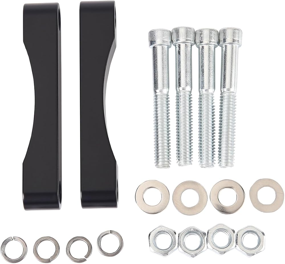 Upgrade your Harley Touring bike with our Front Fender Bracket Kit and enjoy a smoother and more comfortable ride. Compatibility: This kit is compatible with Harley Touring 1997-2013 (Street Glide FLHX/Road Glide FLHR/Road King FLTR/Electra Glide FLHT) and H-D FL Trike. Easy Installation: Our front fender bracket kit is easy to install and can be installed on the 2 hole mount wrapped fender. The spacers feature 3" on-center holes, making it easy to install custom fenders.