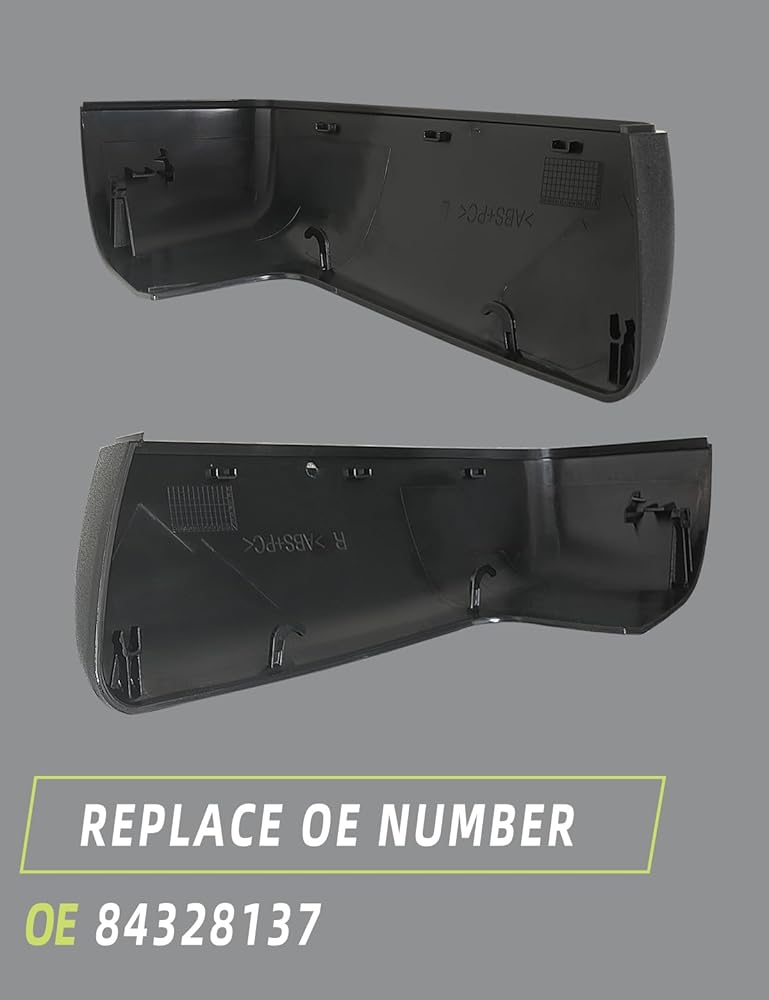 غطاء نصف مرآة علوي مزخرف باللون الأسود متوافق مع Chevy Silverado 1500/ GMC Sierra 1500 2019-2024 قطع غيار الملحقات تحل محل 84732427 84732426 يسار يمين زوج واحد